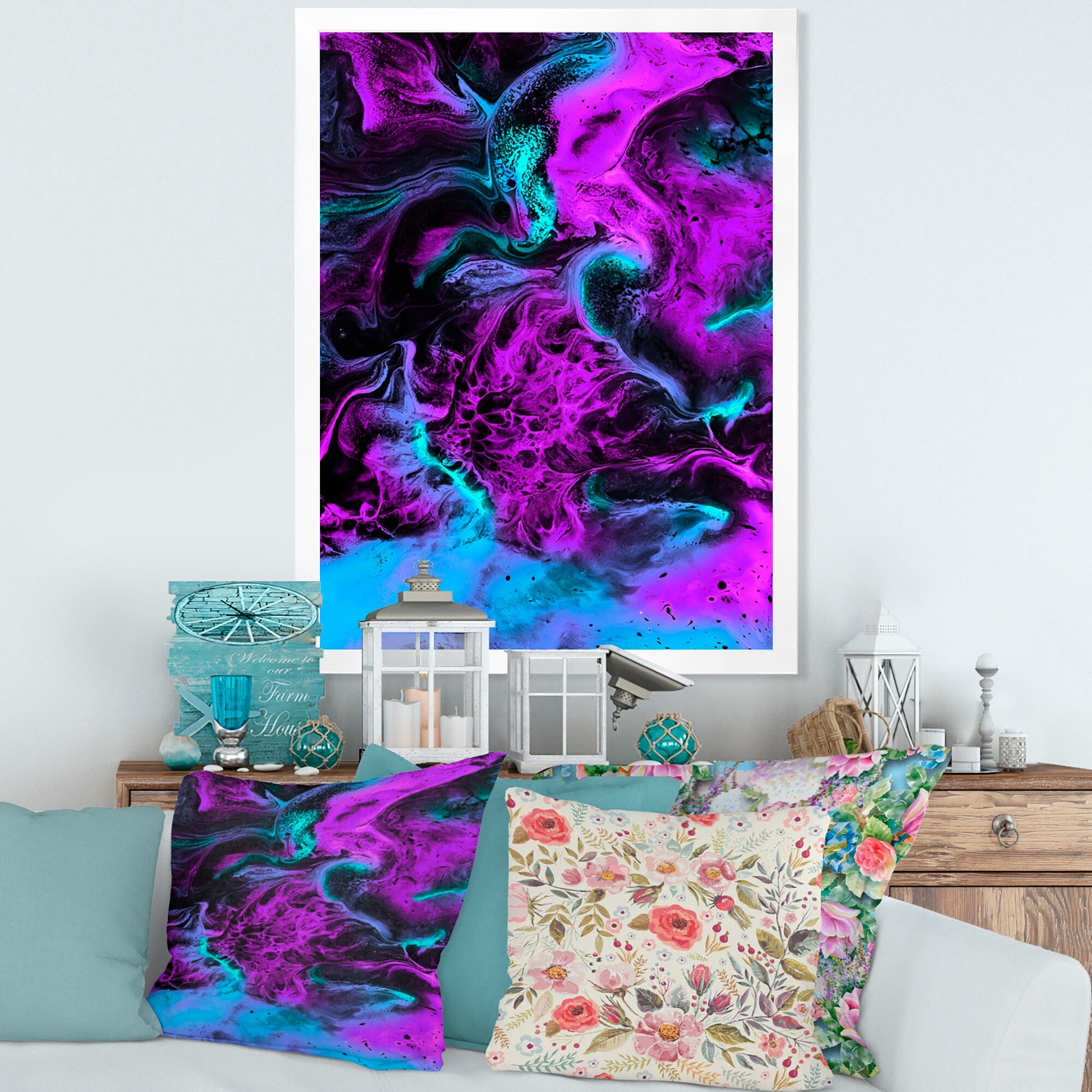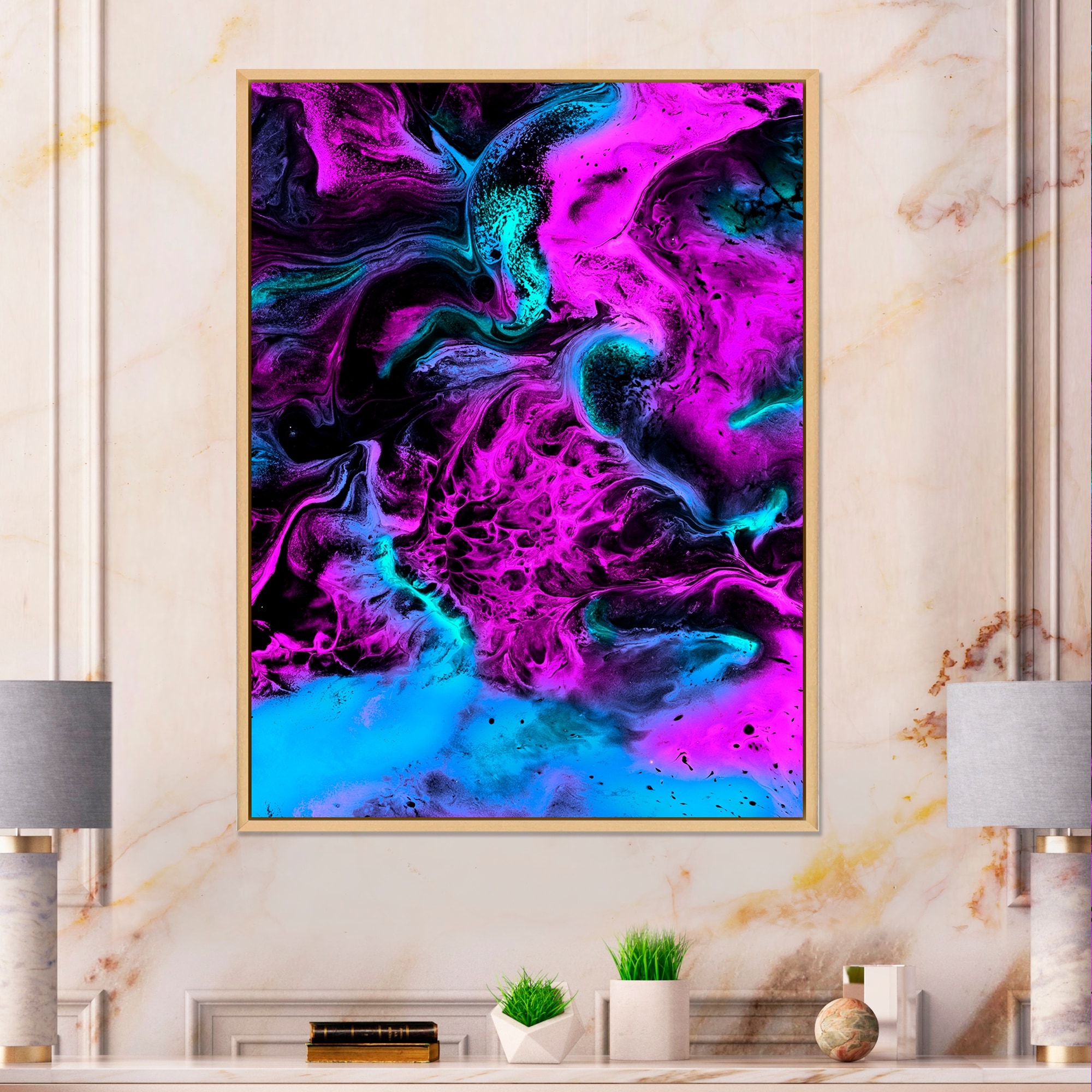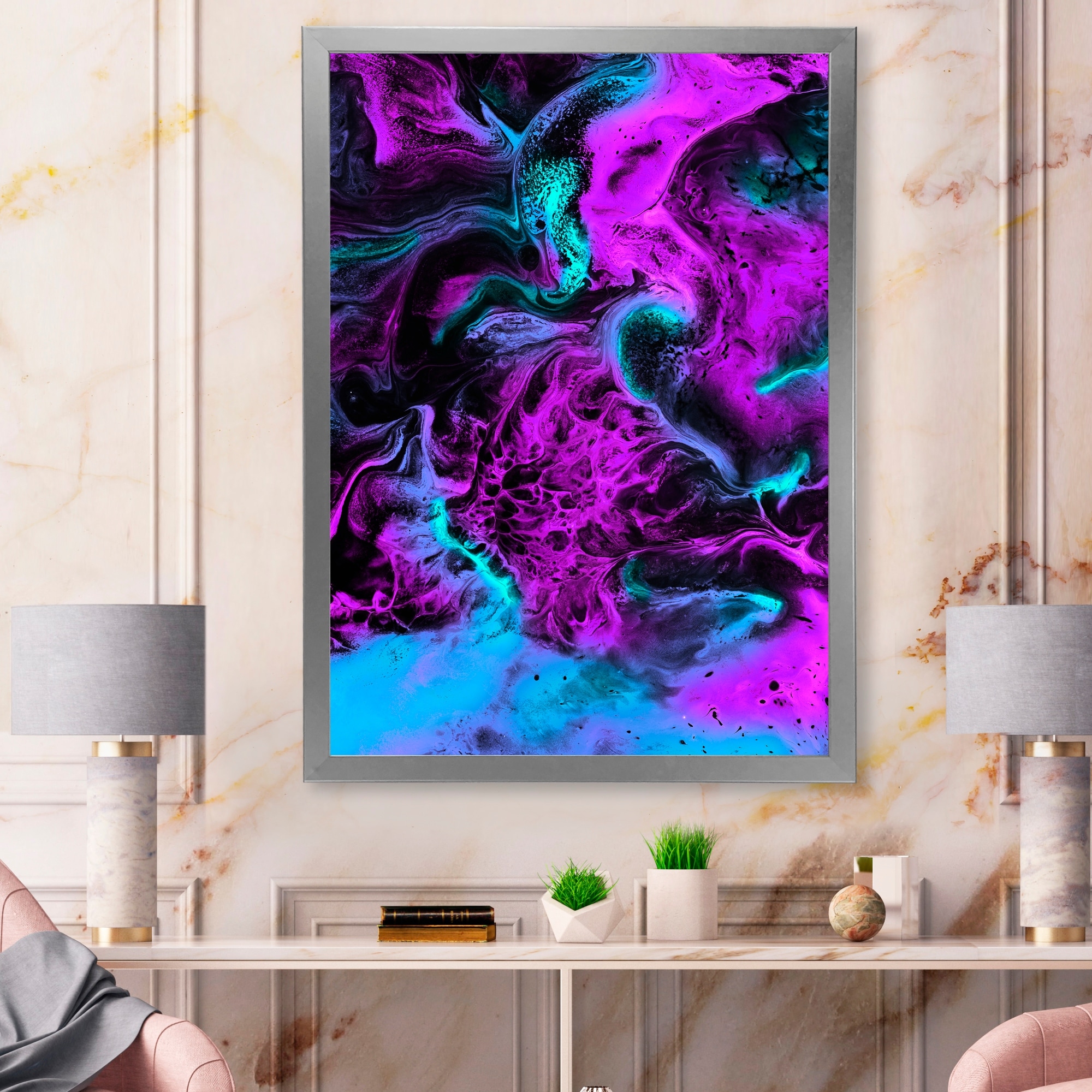 Designart "Neon Liquid Art in Purple And Blue" Modern Framed Canvas Wall Art Print