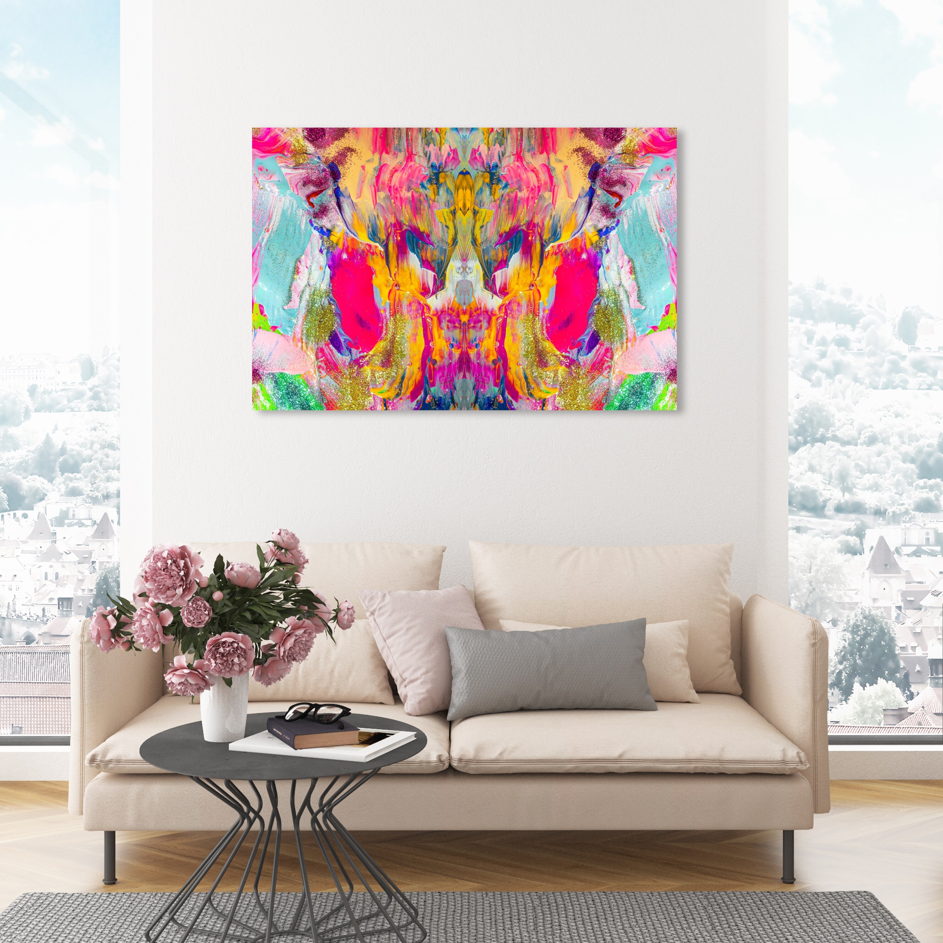 Oliver Gal 'Bright Neon Symmetry' Abstract Wall Art Canvas Print Paint - Pink, Gold