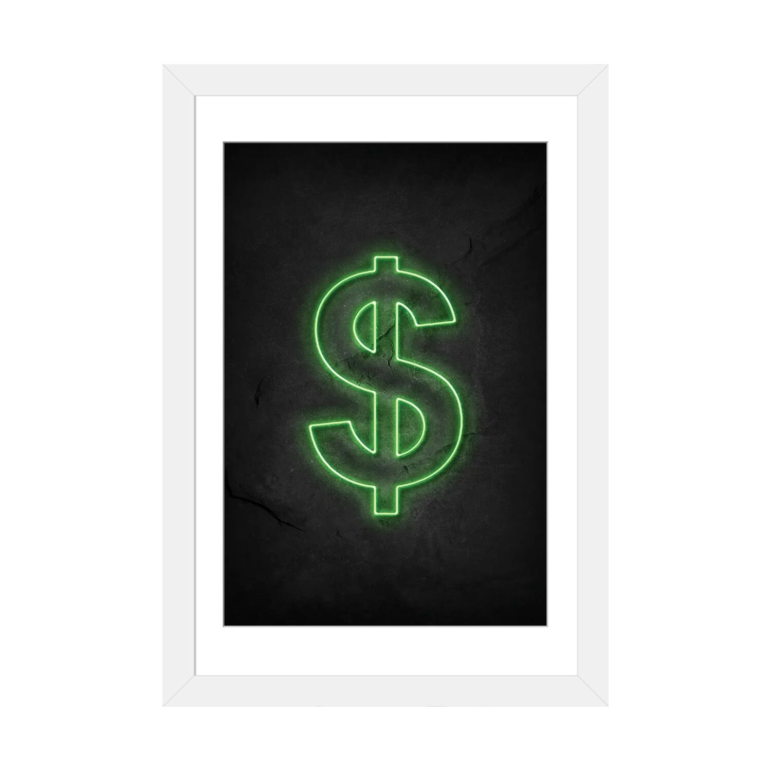 Designart "Founding Fathers Neon Dollar" Modern & Contemporary Framed Canvas Wall Art