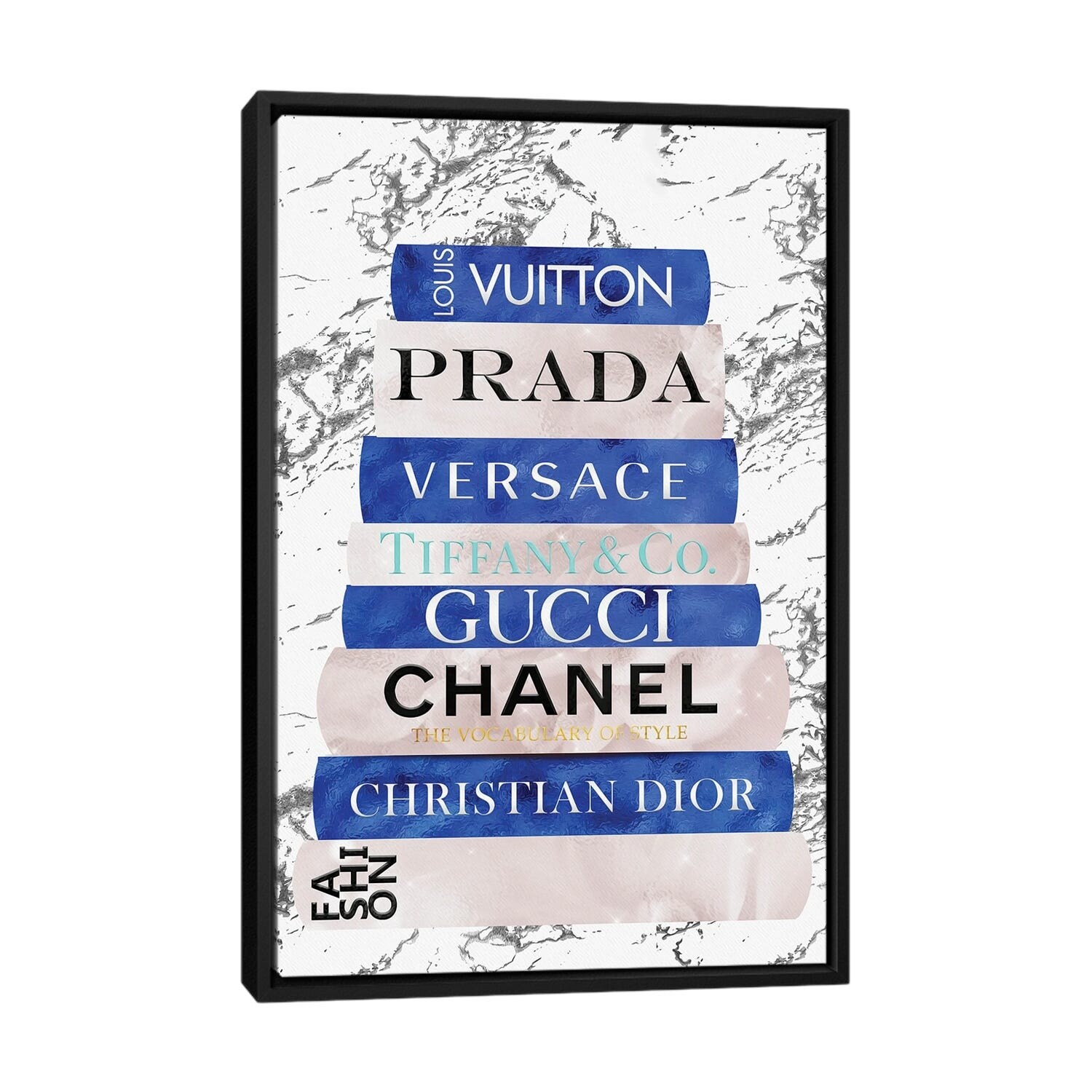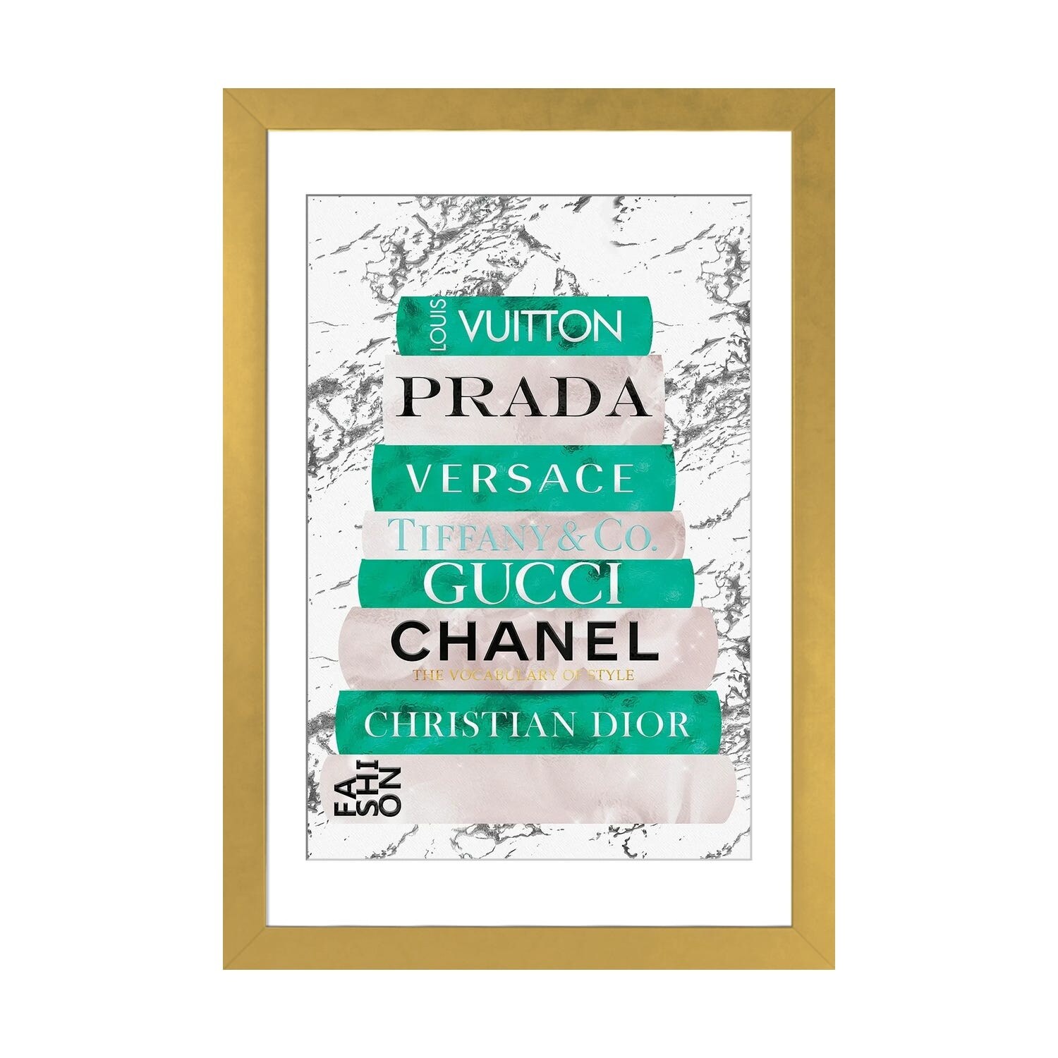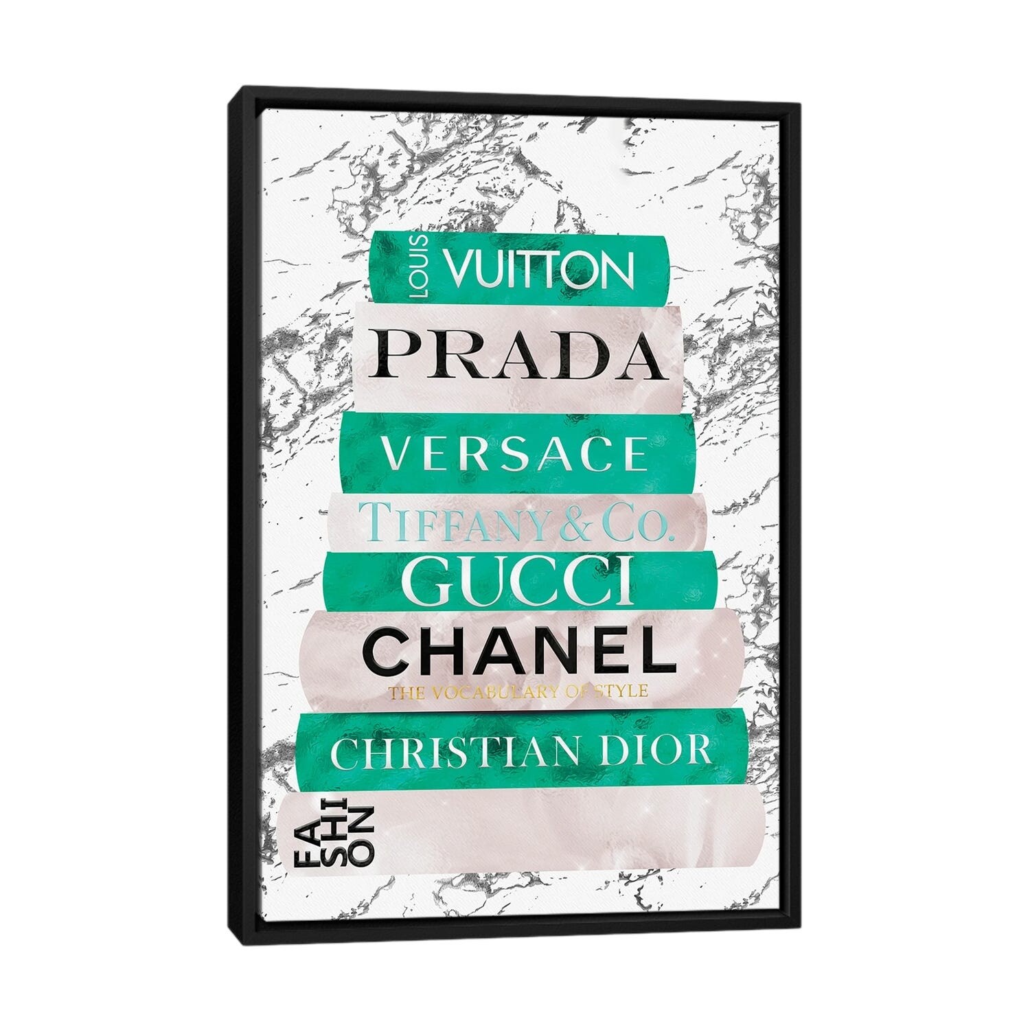 iCanvas "Fashion Nerd_Black White Gold & Teal Fashion Book Stack" by Pomaikai Barron Framed
