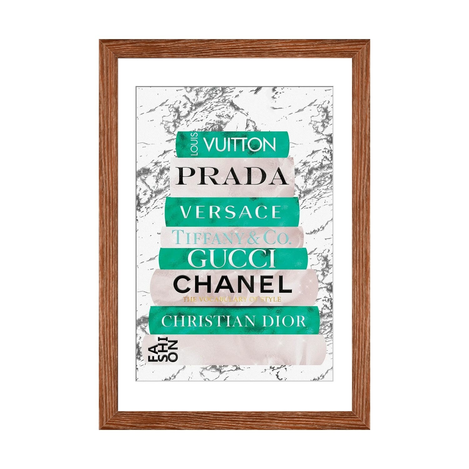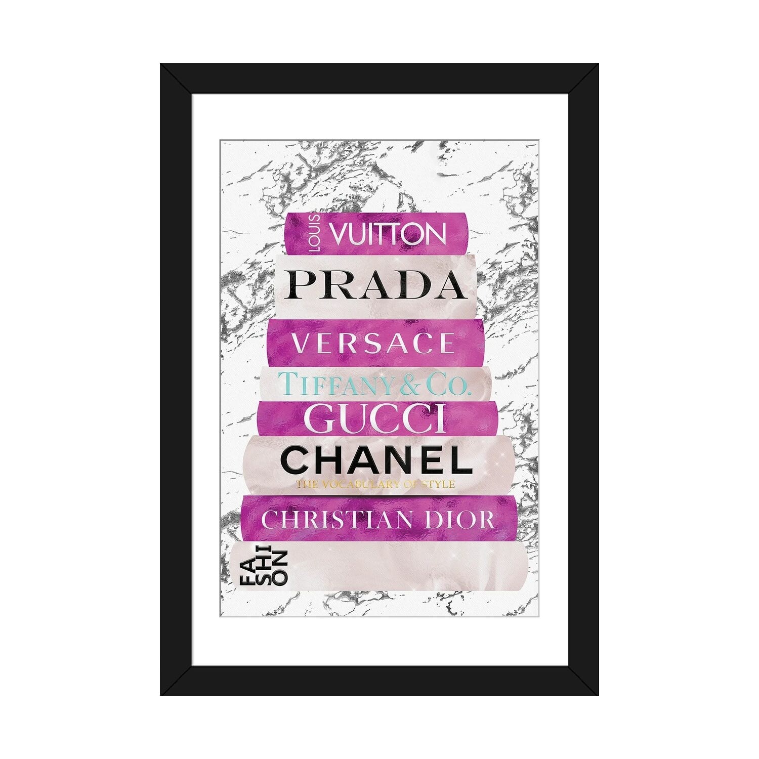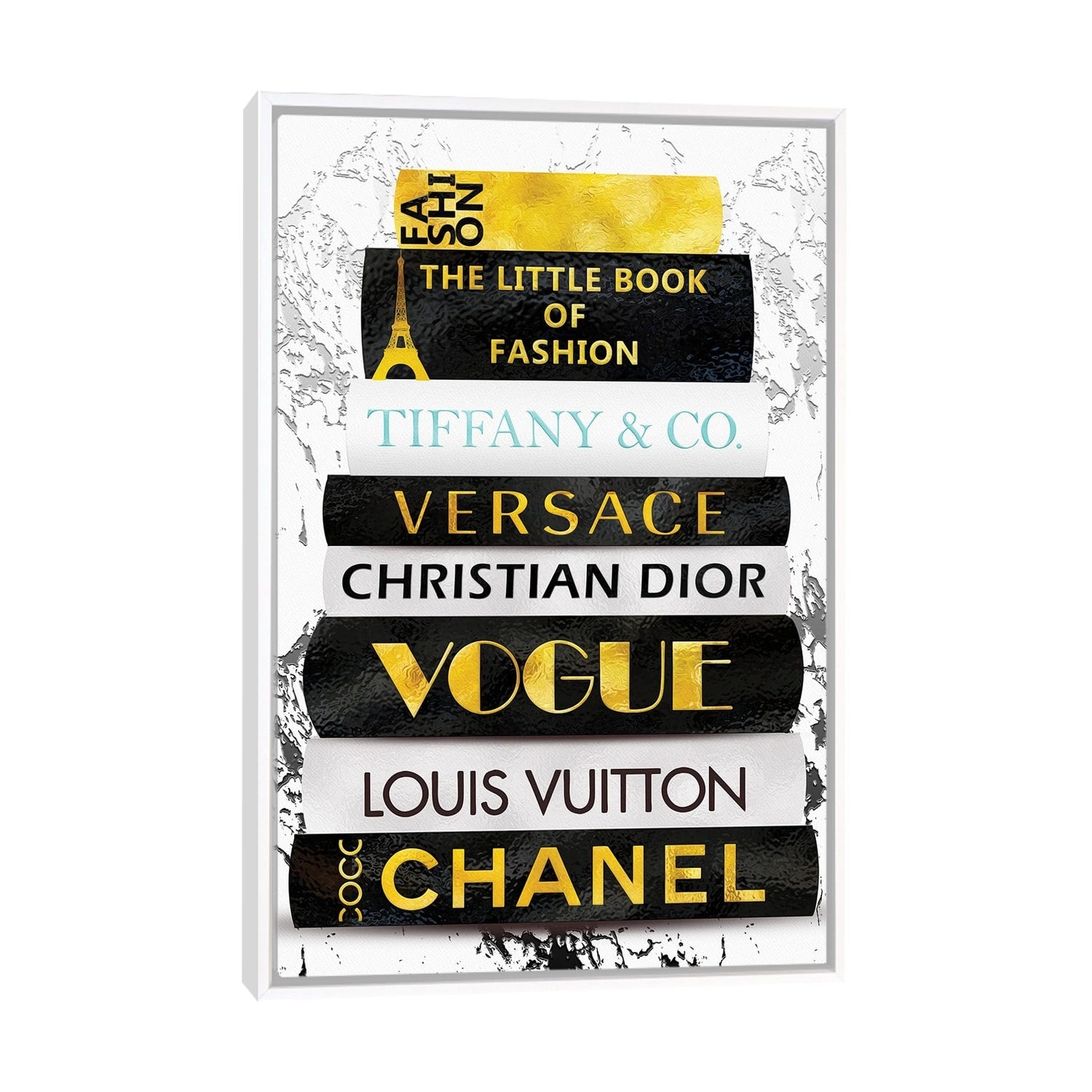 iCanvas "Fashion Nerd_Black White Gold & Teal Fashion Book Stack" by Pomaikai Barron Framed