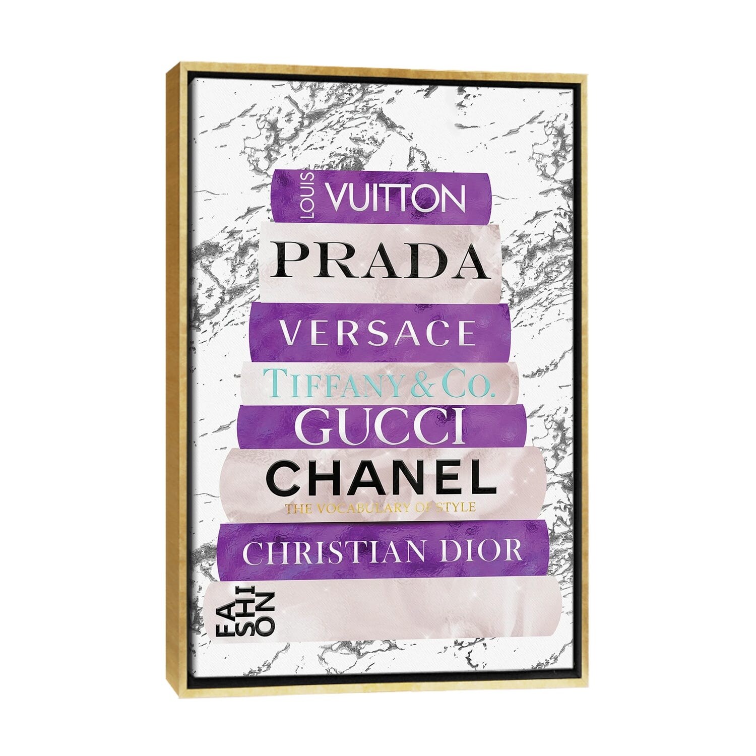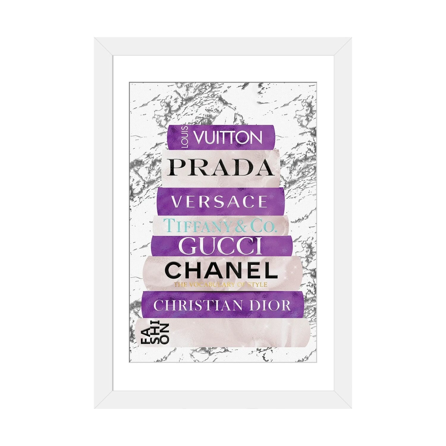 iCanvas "Fashion Nerd-Bright Violet & Beige Book Stack" by Pomaikai Barron