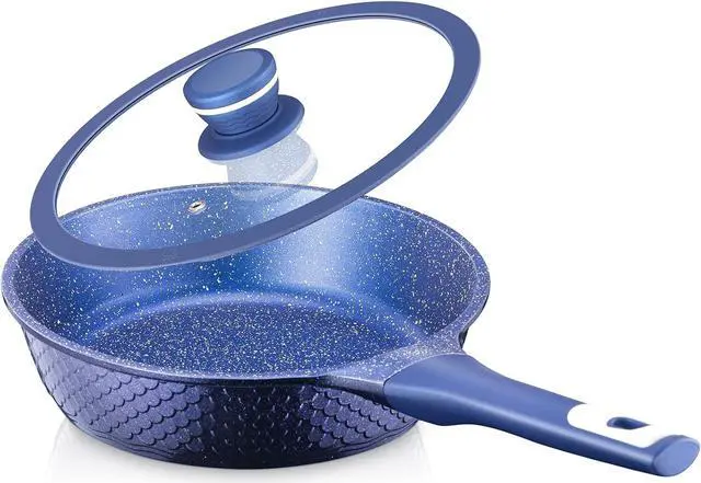 Ailwyn 8" Nonstick Small Frying Pan with Lid - 8 Inch Nonstick Skillets with USA Blue Gradient Granite Derived Coating