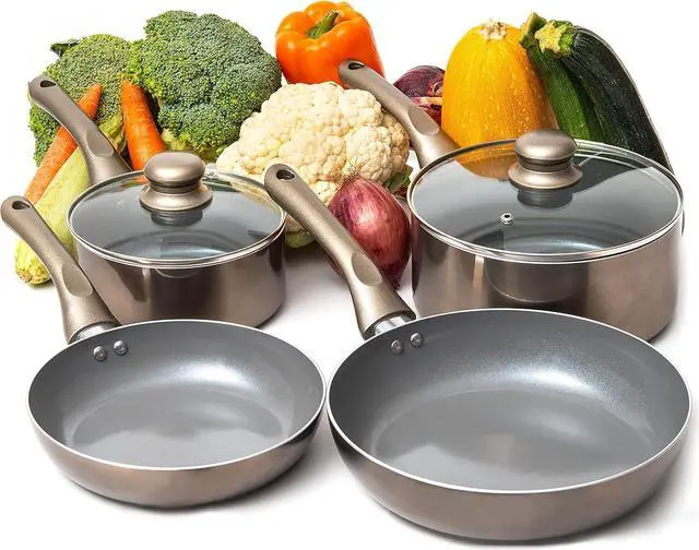Moss & Stone 4 Piece Nonstick Cookware Set, Small Pots And Pans Set Non stick With Glass Lid, Induction Cookware, Stay Cool Handle, PTFE/PFOA, Kitchen Cookware 4-Piece with Frying Pans Set & Saucepan