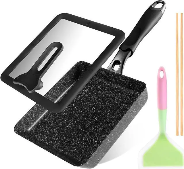 Tamagoyaki Pan - Japanese Egg Pan with Lid - Japanese Omelette pan Nonstick - Omelet Pan for Japanese Food - Square Frying Pan