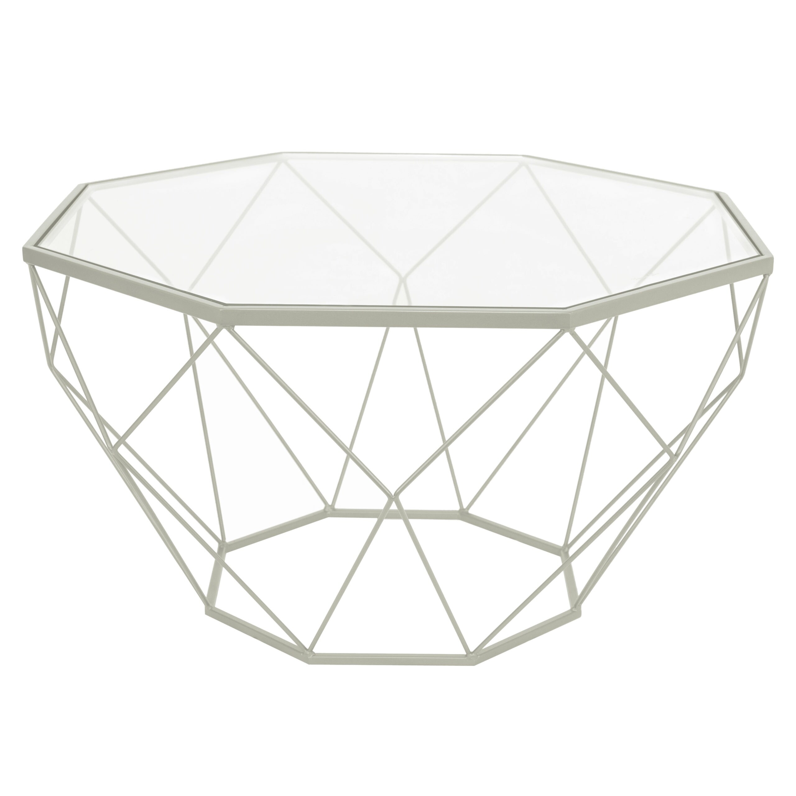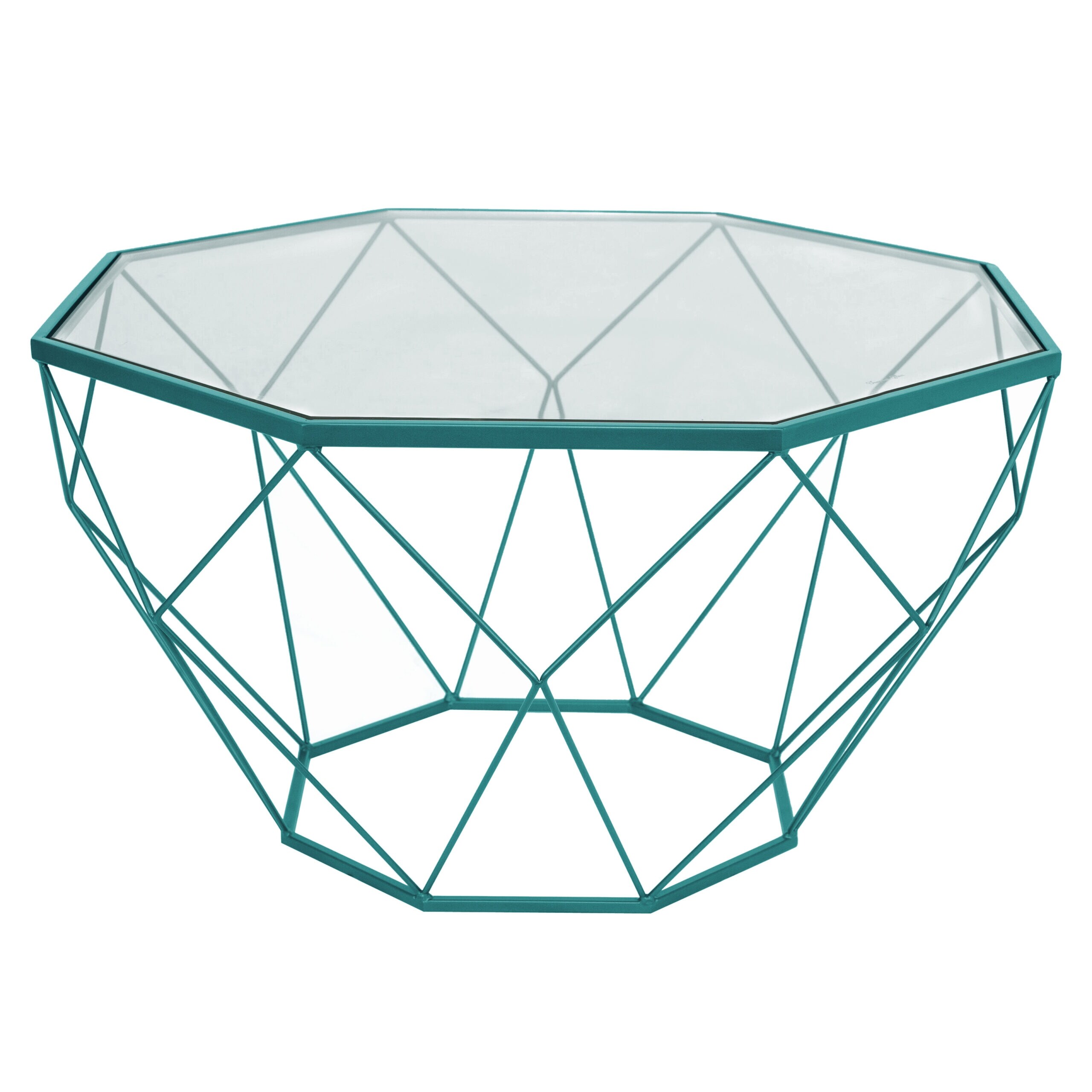 LeisureMod Malibu Octagon Glass Top Coffee Table With Geometric Base