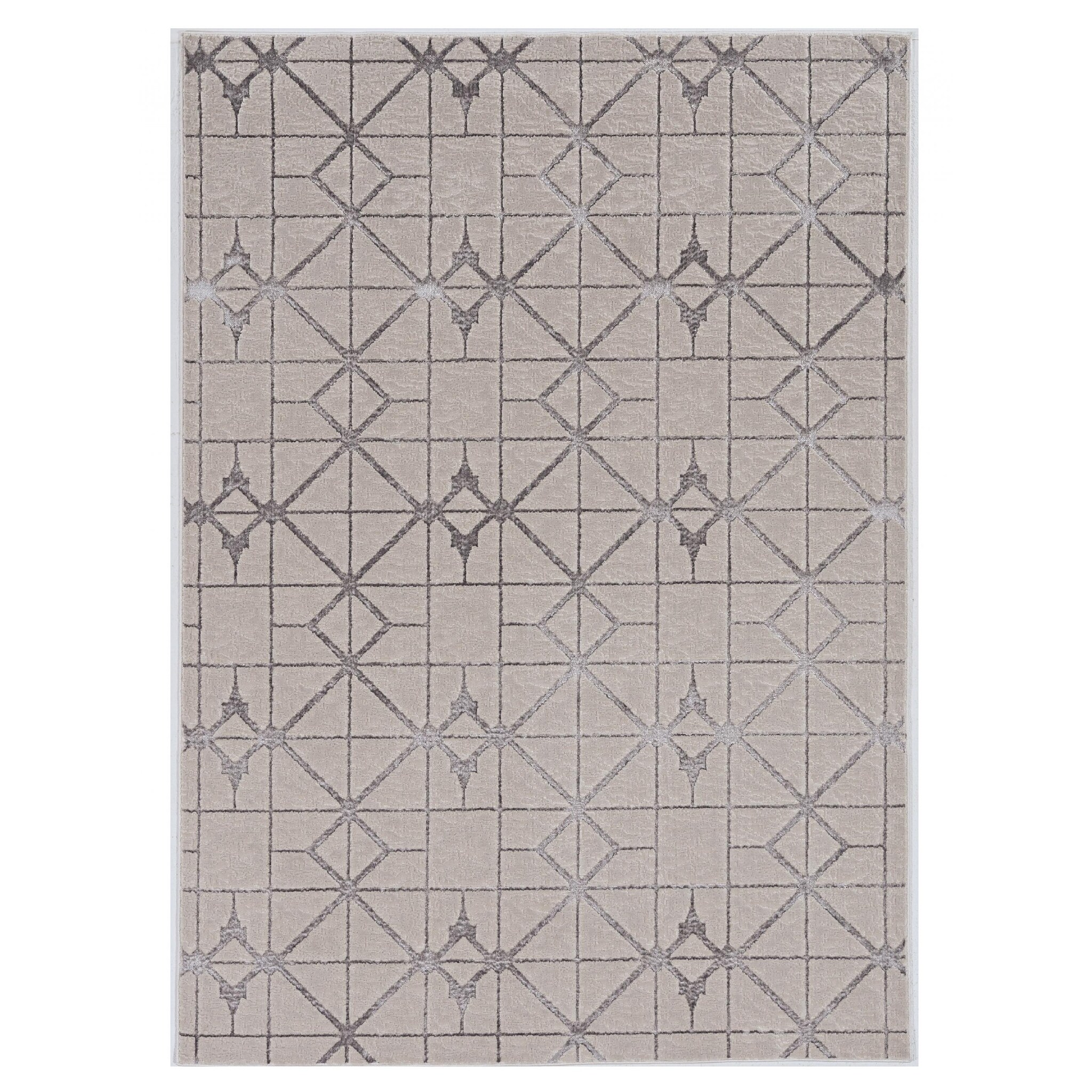HomeRoots 5'x8' Ivory Silver Geo Area Rug - 5' Octagon|Lav