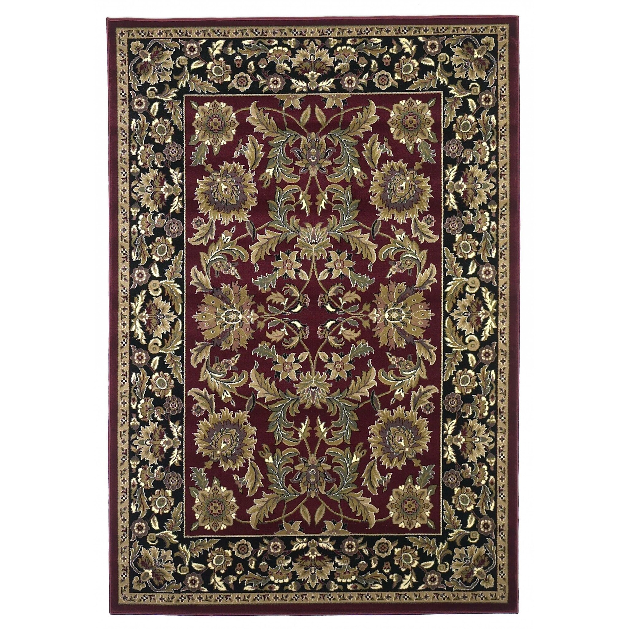 HomeRoots 5' x 8' Red or Black Floral Bordered Area Rug - 5' Octagon