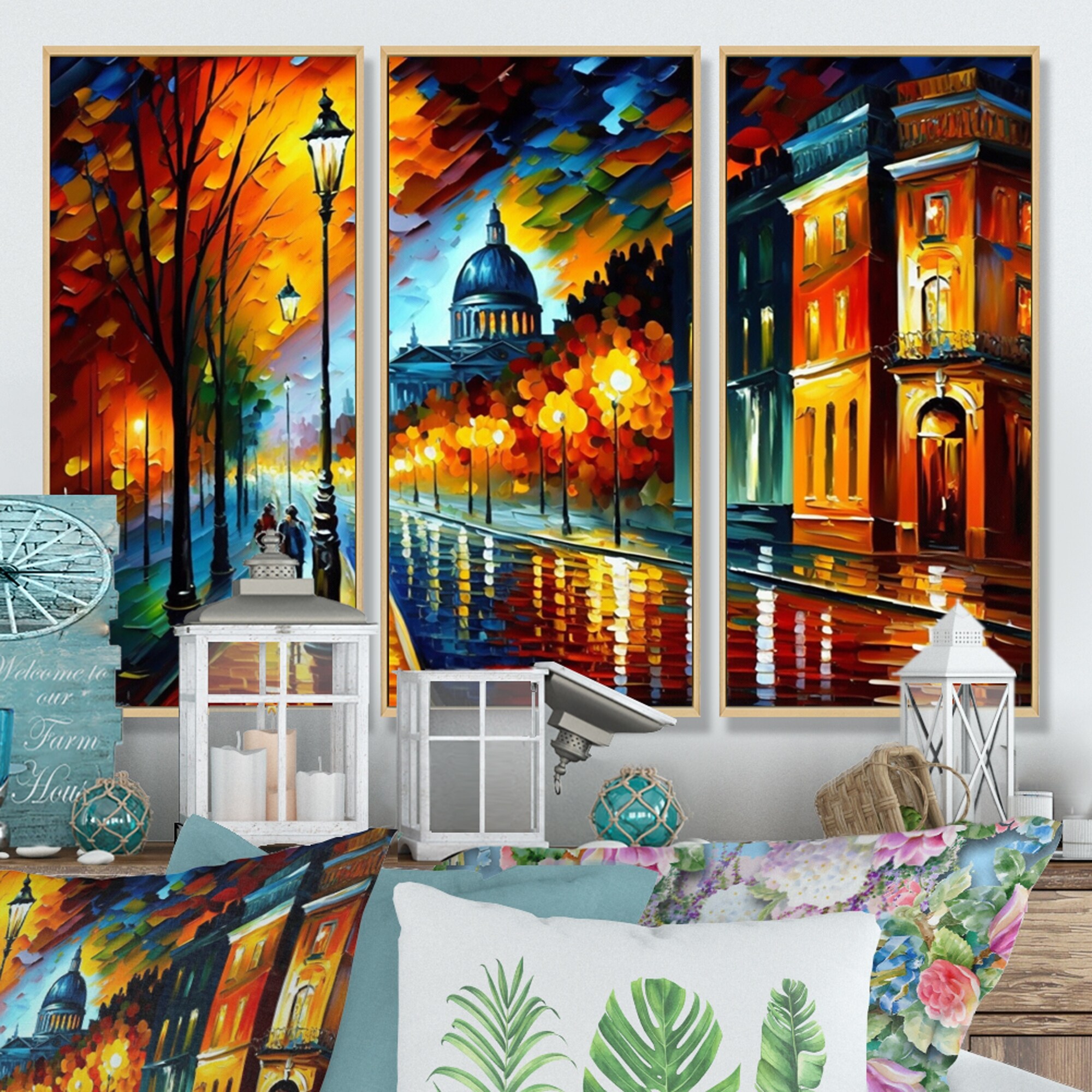 Designart "Colorful Montreal City IV" City Framed Canvas Art Print - 3 Panels