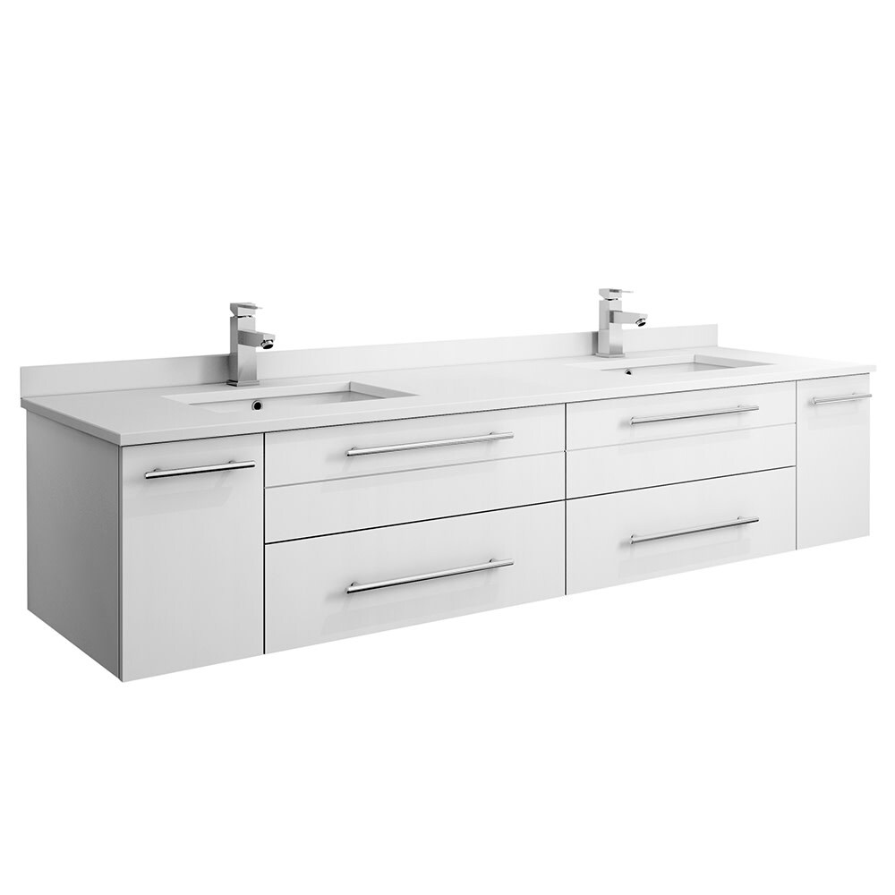 Fresca Lucera 72" Wall Mounted Double Basin Vanity Set with Cabinet