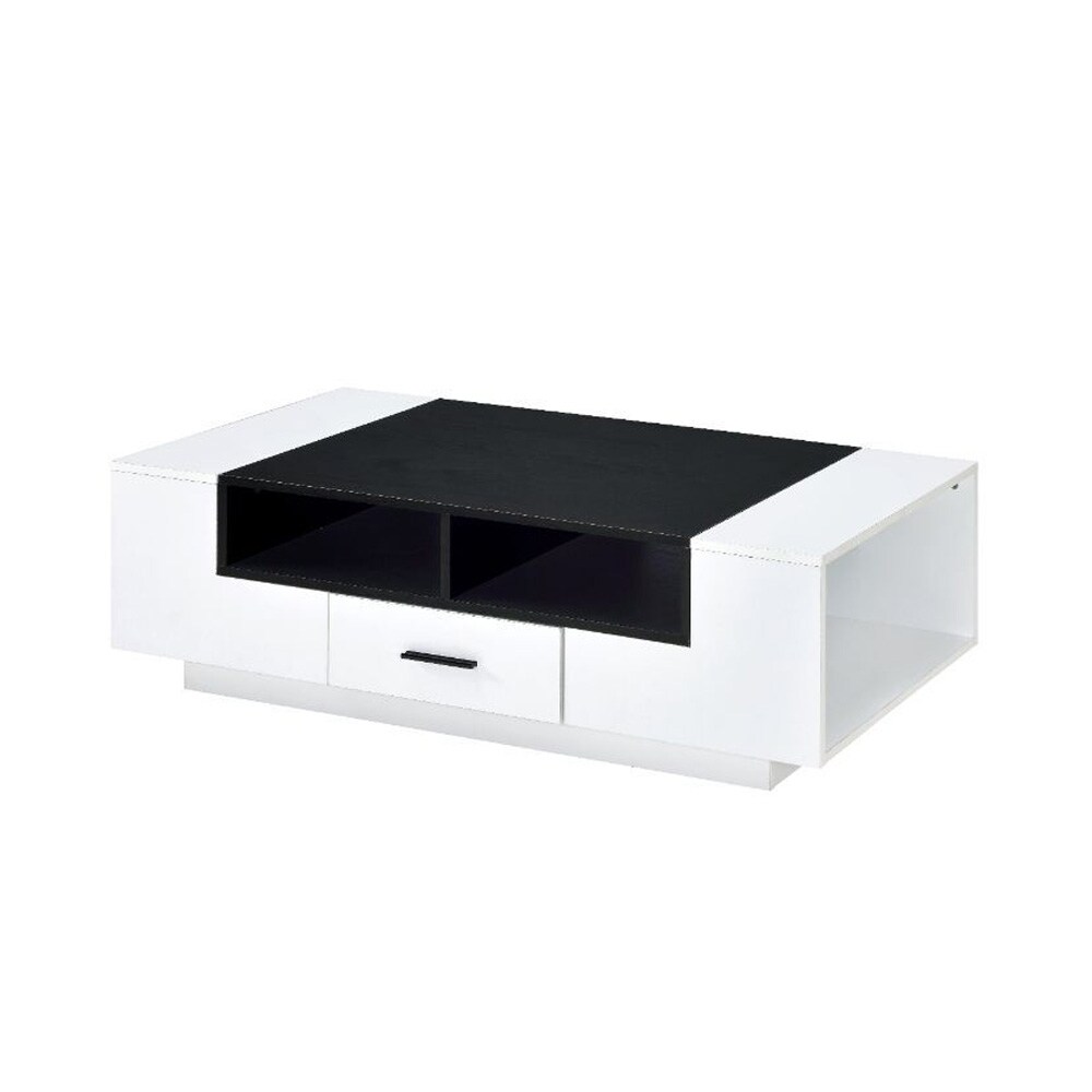 One Drawer Wooden Coffee Table in White and Black Finish