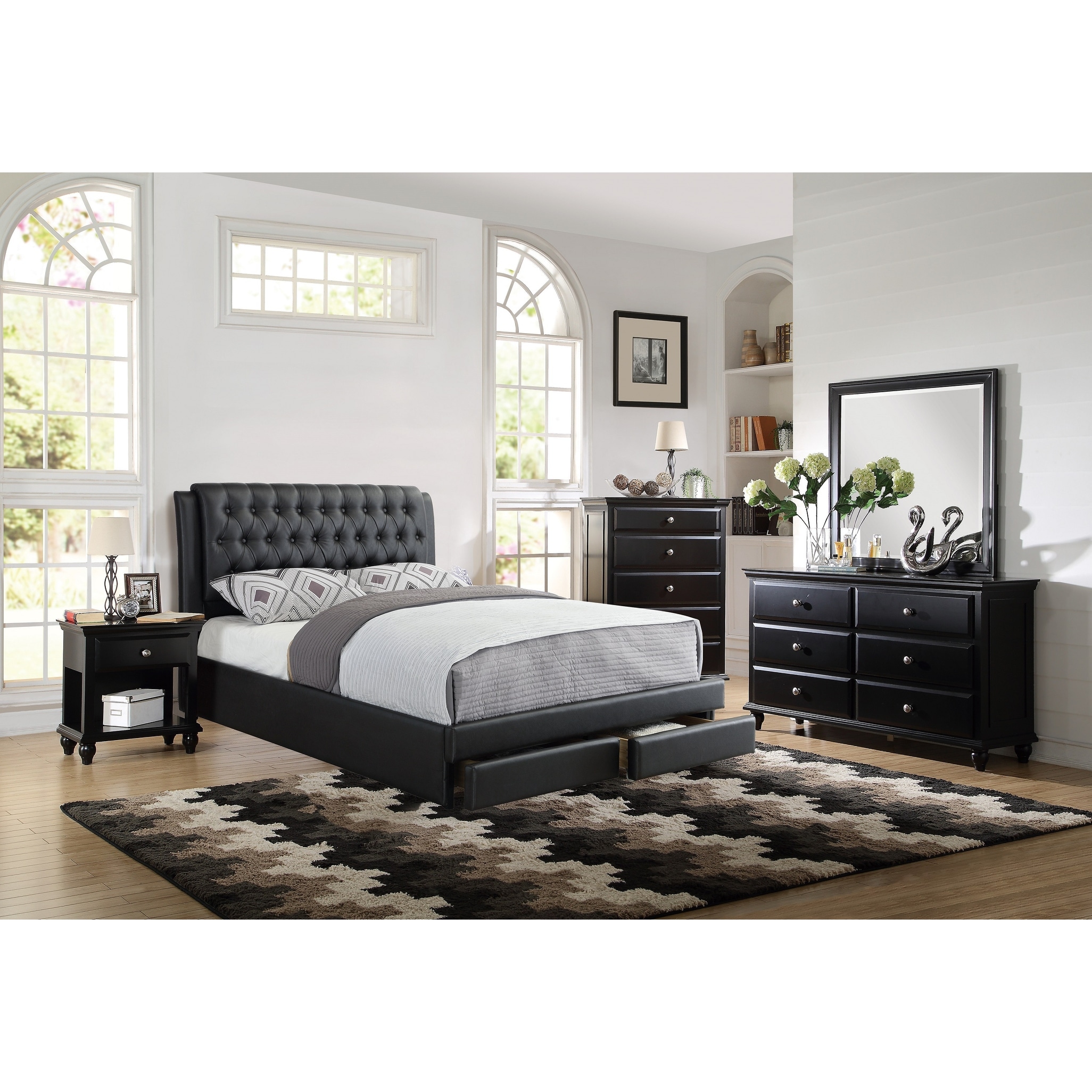 Black Nightstand With One Drawer And Shelf in White Finish