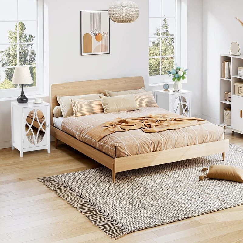 White Nightstand with One Door 2Pcs