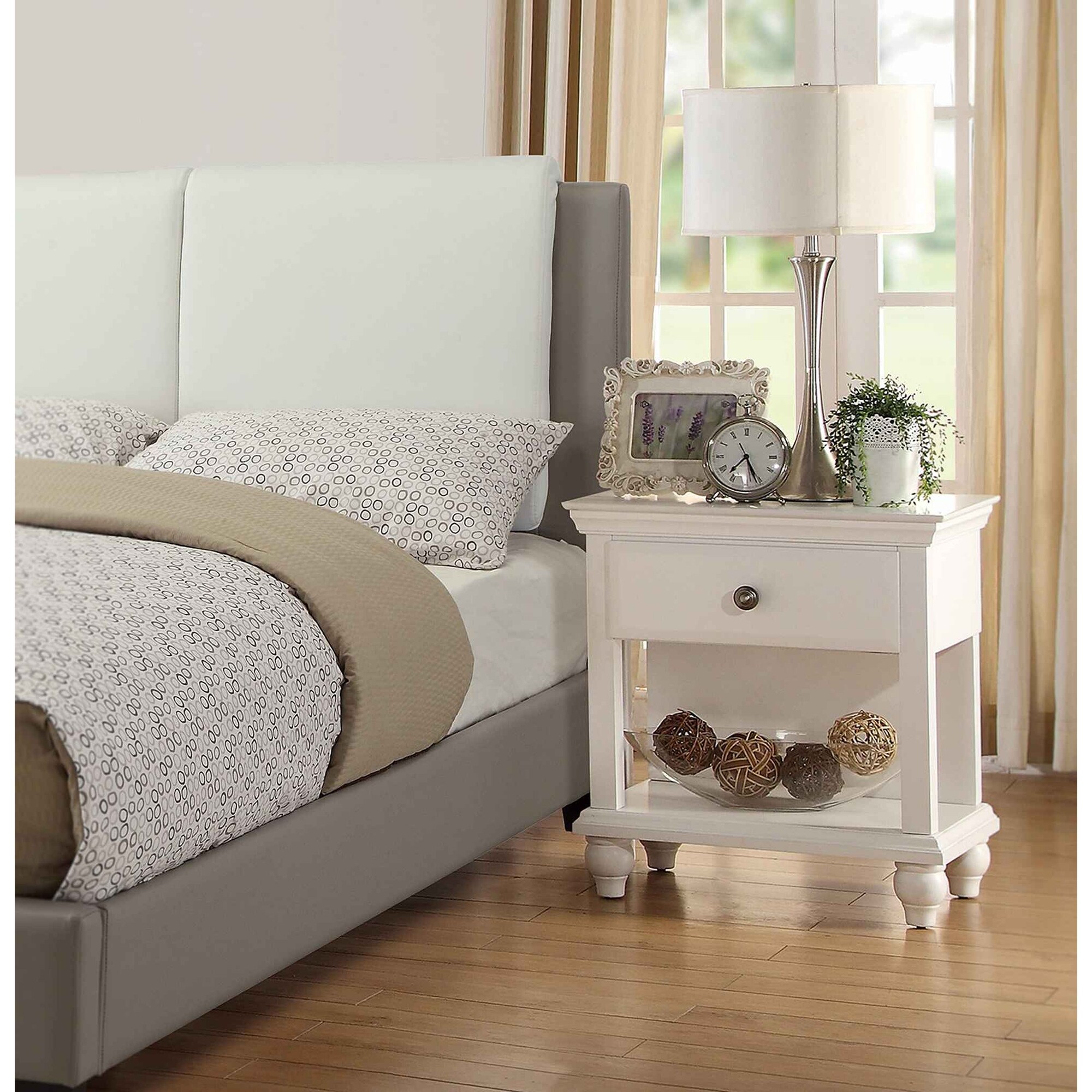White Nightstand With One Drawer And Shelf in White Finish