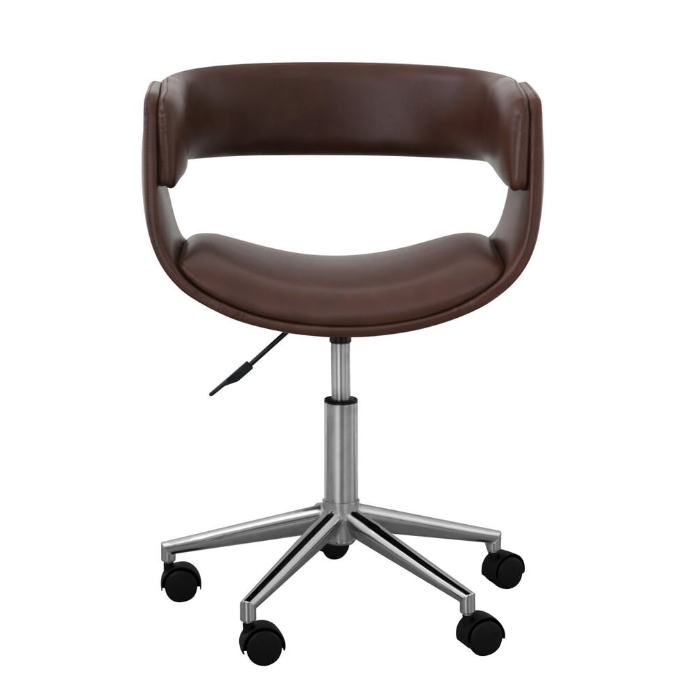 Modern PU Leather Office Chair with Adjustable Ergonomic Seat, Swivel Base, Brown/Chrome