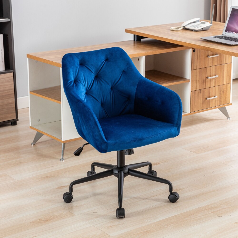 Velvet Fabric Swivel Adjustable Home Blue Office Chair with Soft Seat