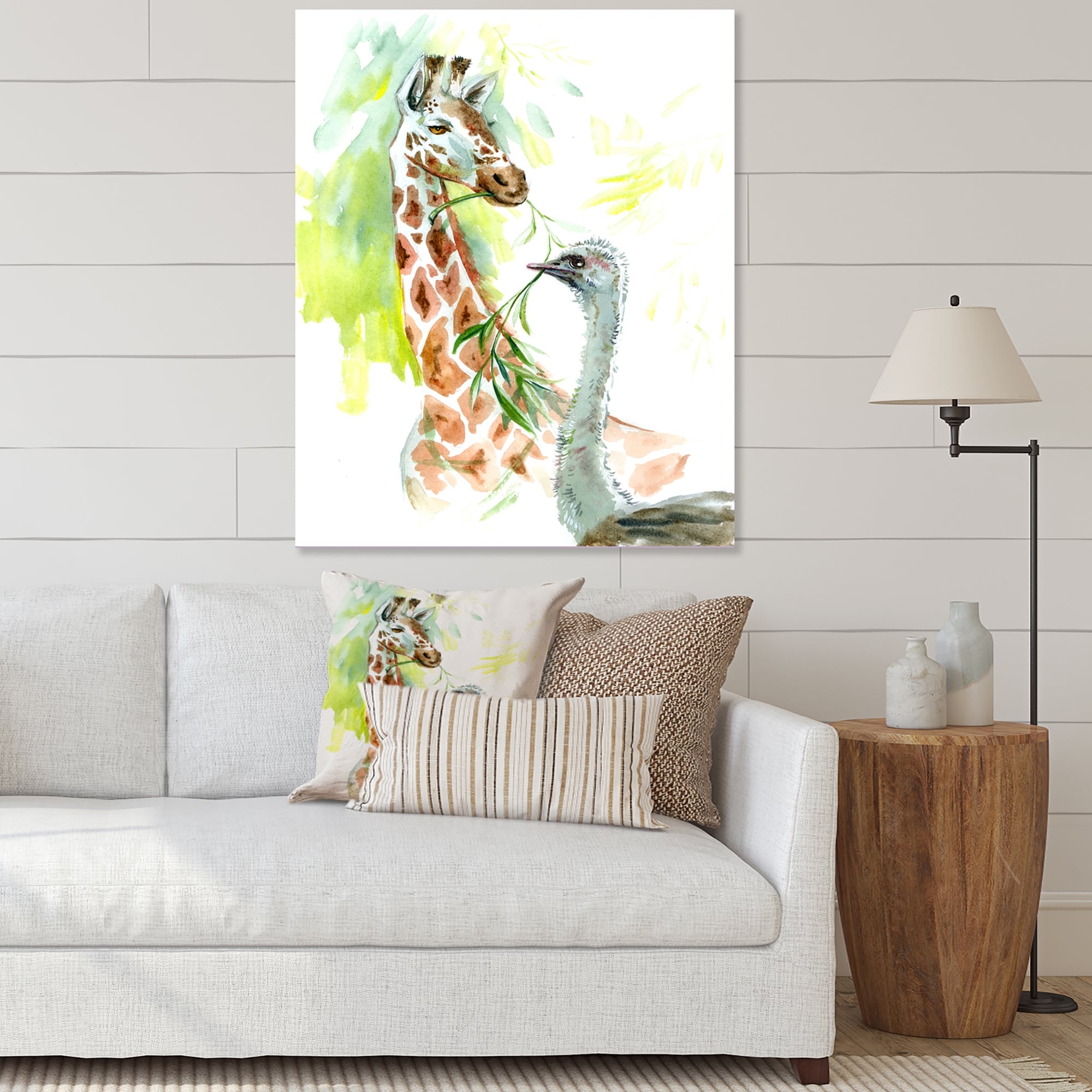 Designart "Portrait Of a Giraffe And an Ostrich" Traditional Canvas Wall Art Print