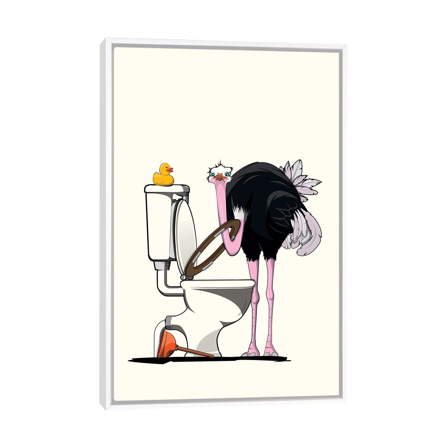iCanvas "Ostrich On the Toilet" by WyattDesign Framed