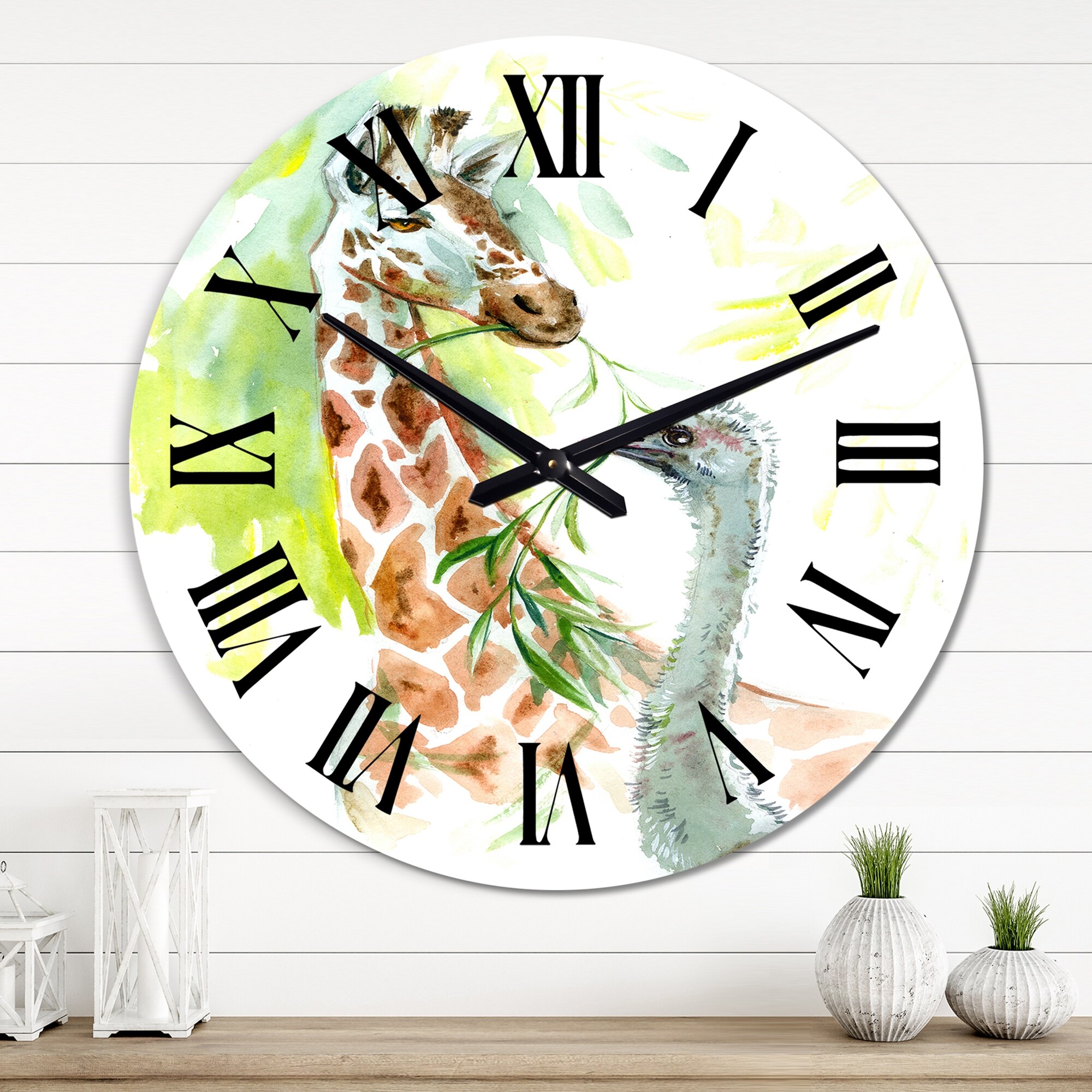Designart 'Portrait Of a Giraffe And an Ostrich' Traditional wall clock