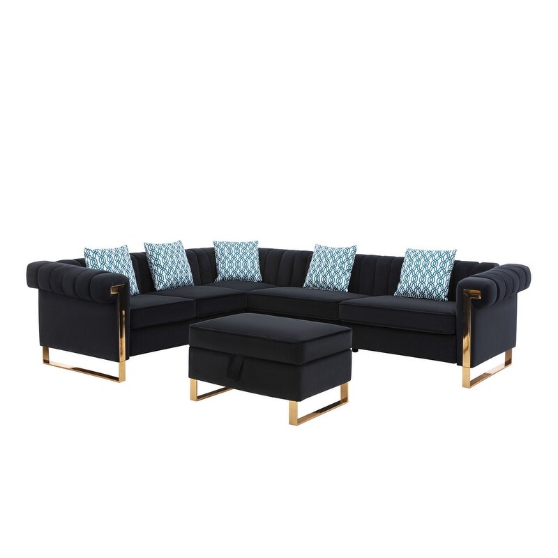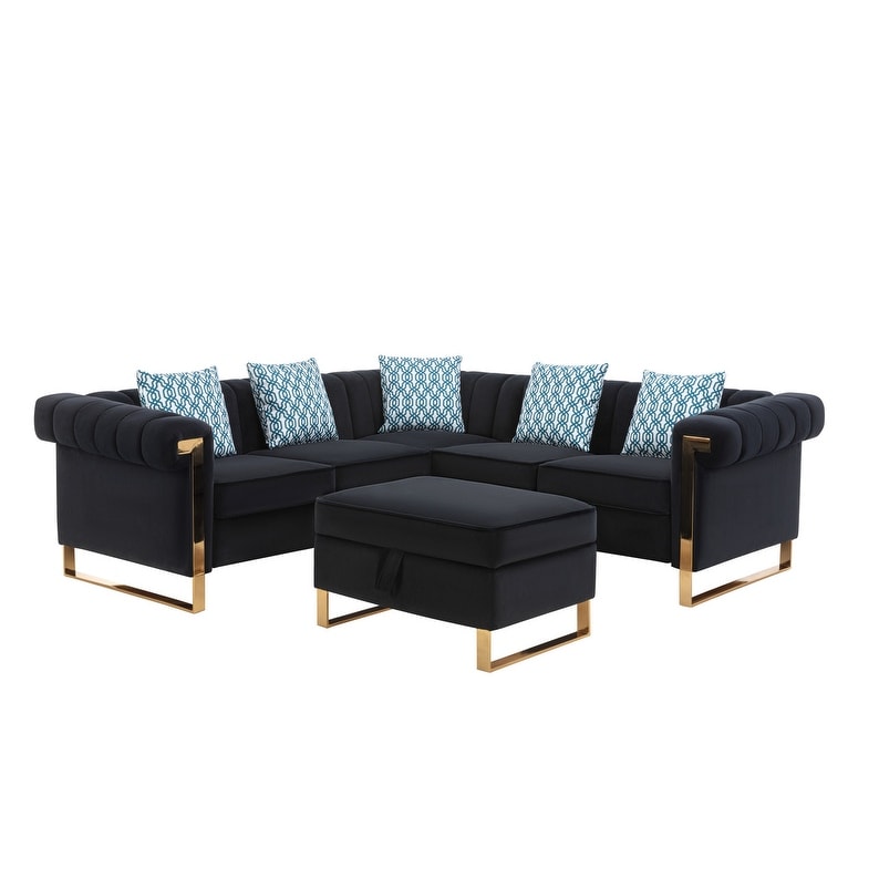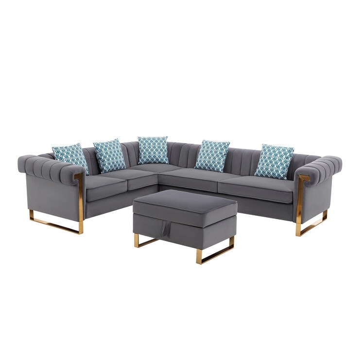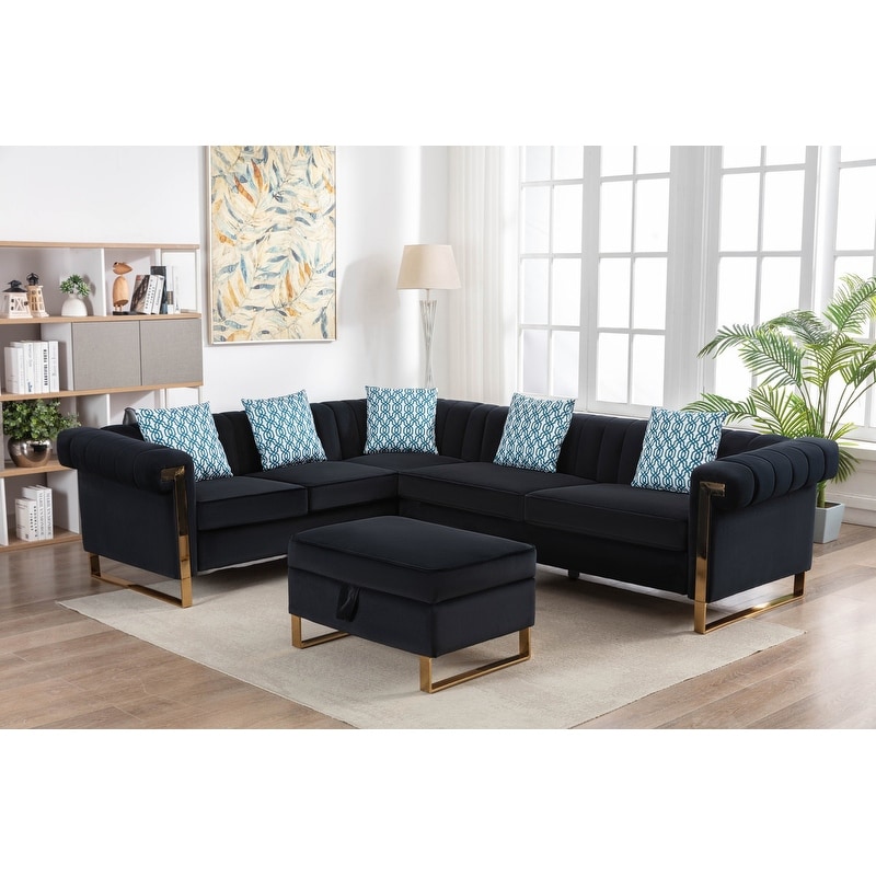 Velvet 6-Seater Sectional Sofa with Storage Ottoman