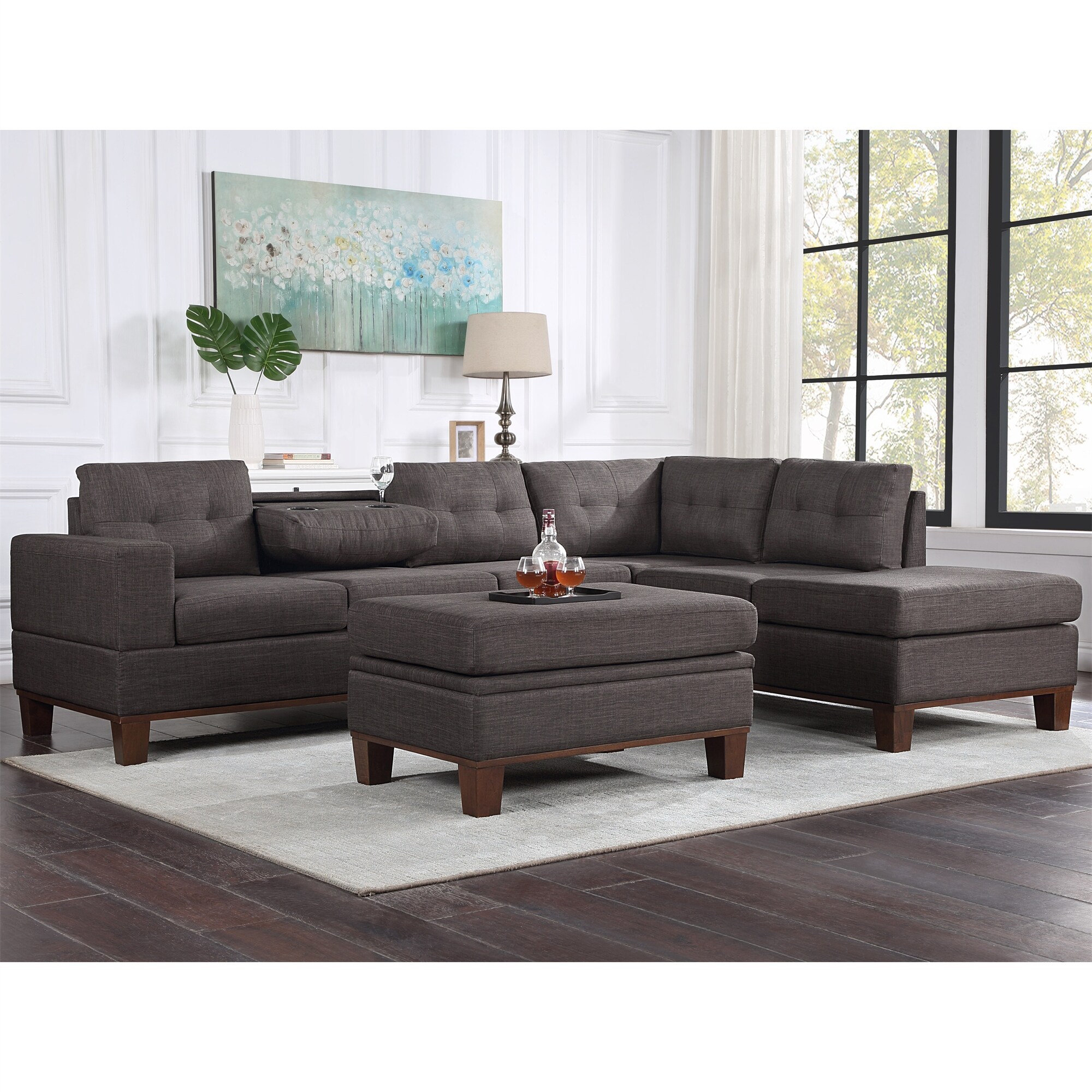 Sectional Sofa with Right Hand Chaise Lounge and Storage Ottoman