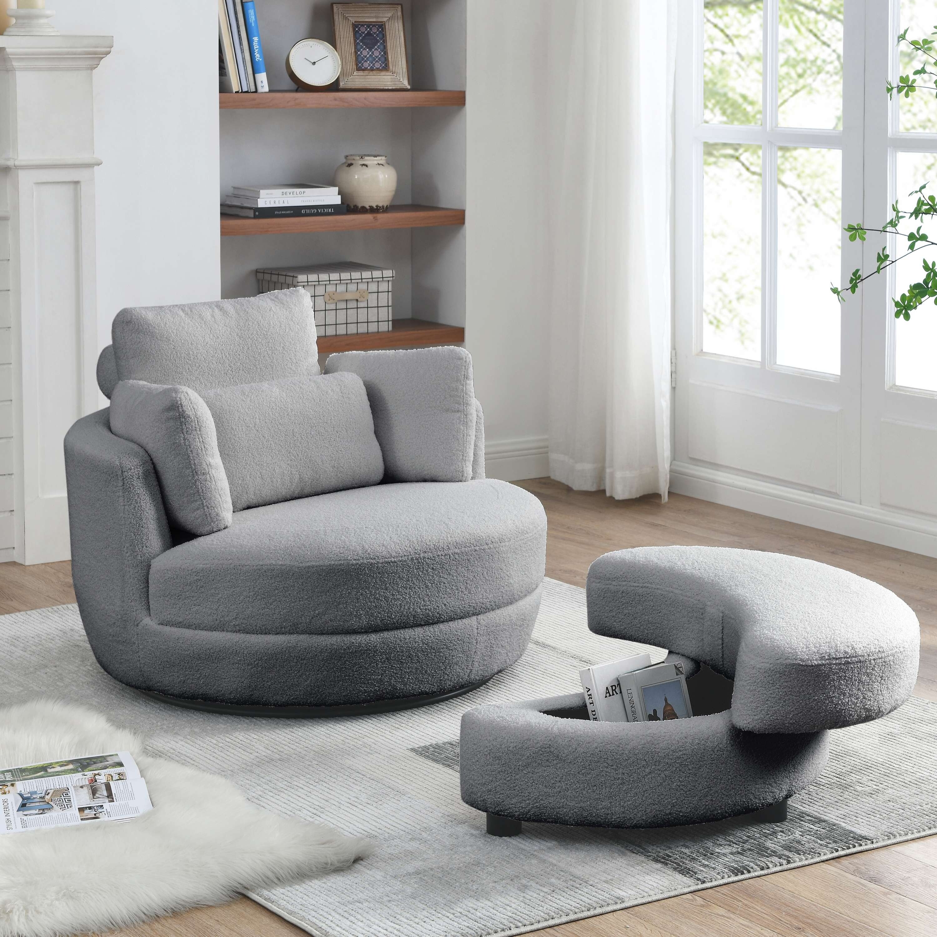 39" Width Oversized Swivel Chair with moon storage ottoman and 4 Pillows
