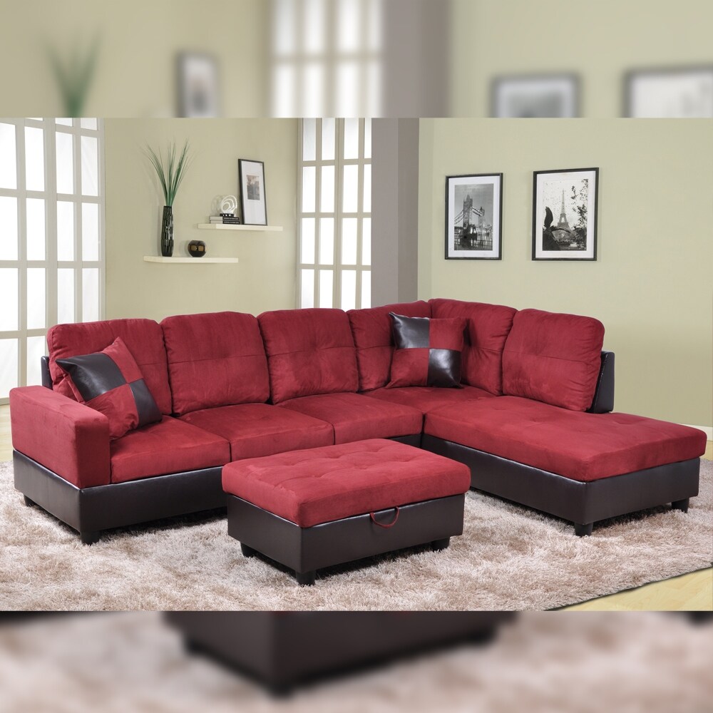 Faux Leather Right Chaise Sectional Sofa Set with Storage Ottoman