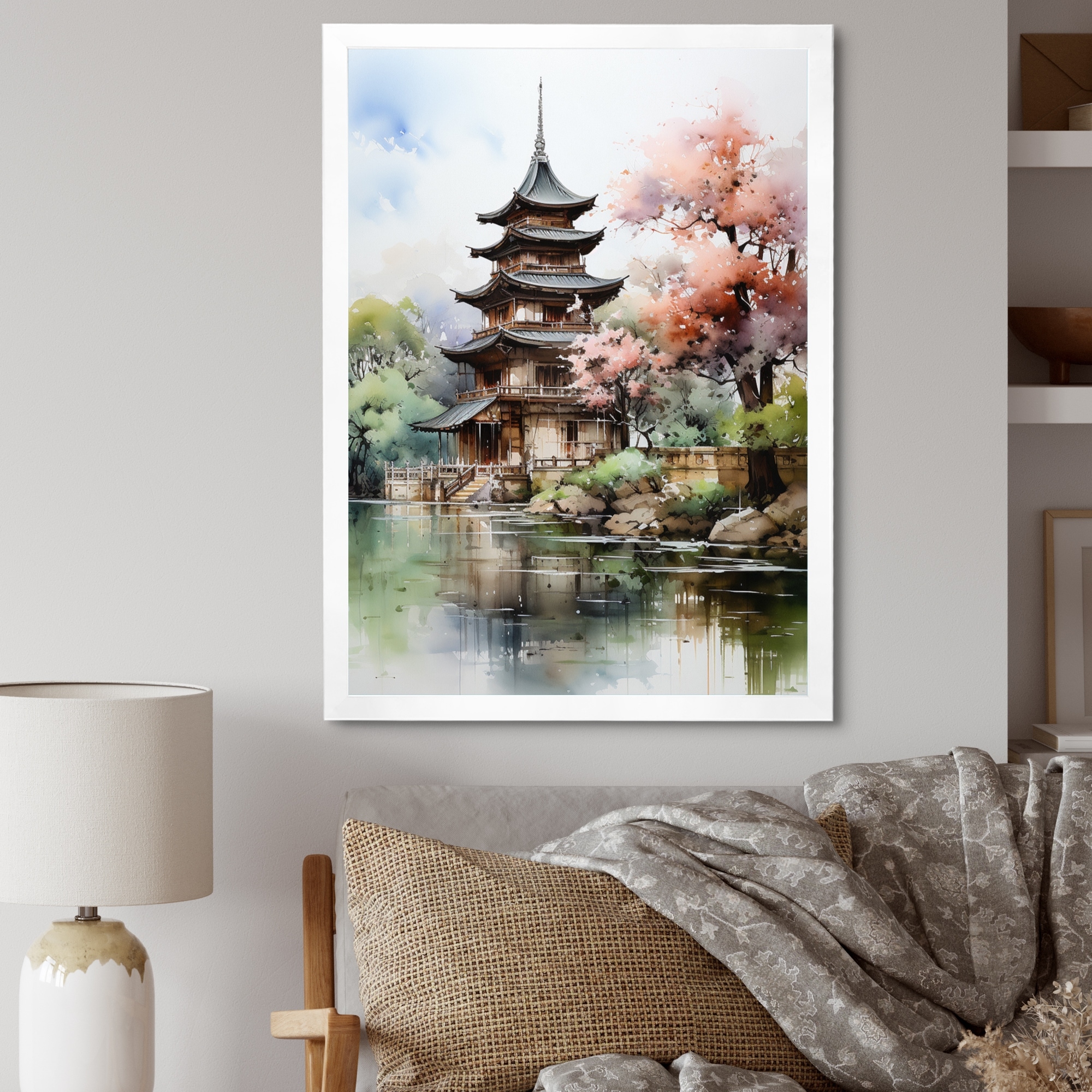 Designart "Asian Art Serene Pagoda II" Asian Art Framed Wall Art Living Room