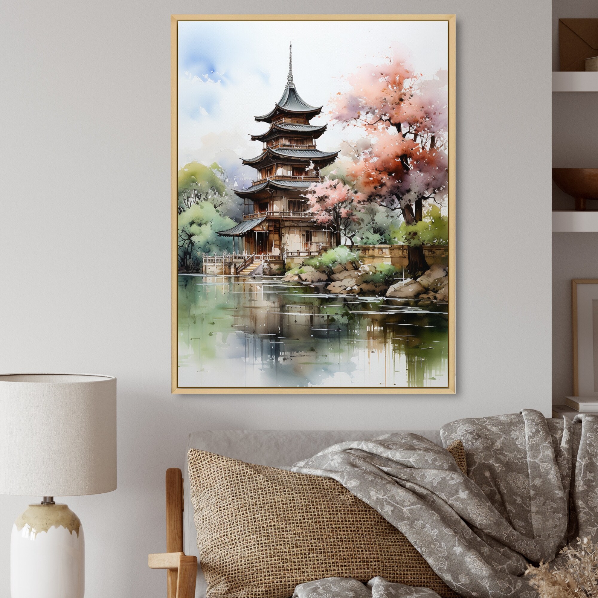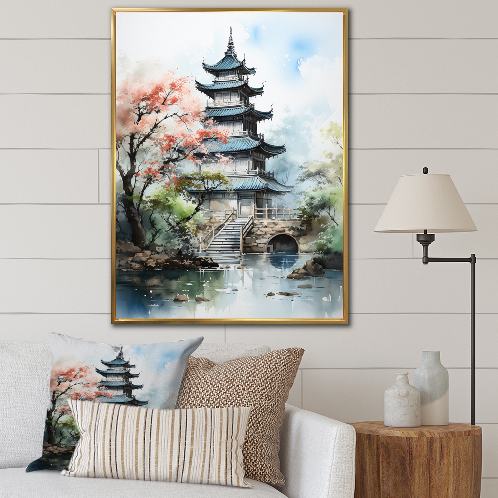 Designart "Asian Art Serene Pagoda II" Asian Art Framed Canvas Wall Art