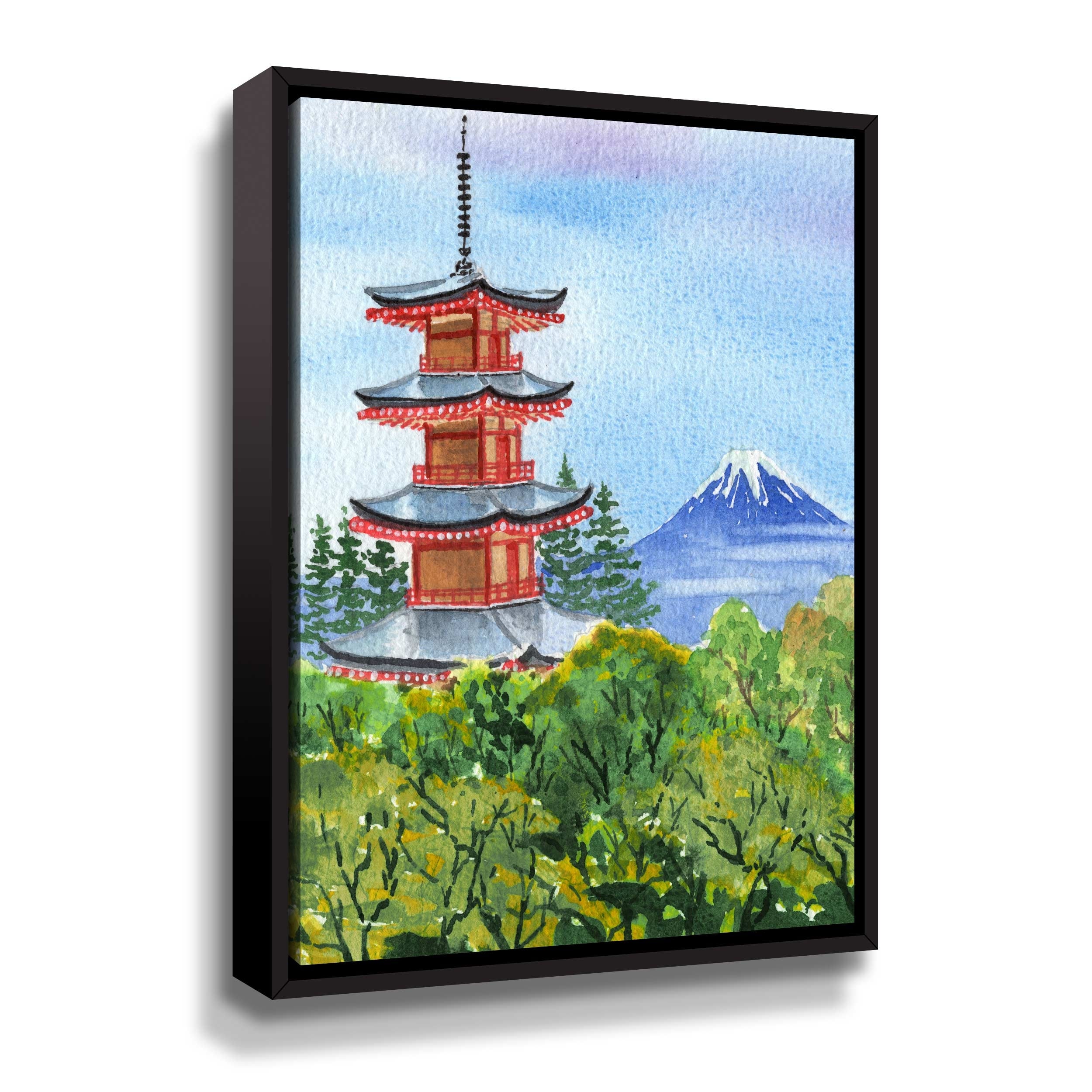 Japan Chureito Pagoda Mt. Fuji Watercolor Japanese Landscape by Irina Sztukowski Gallery Wrapped Floater-framed Canvas