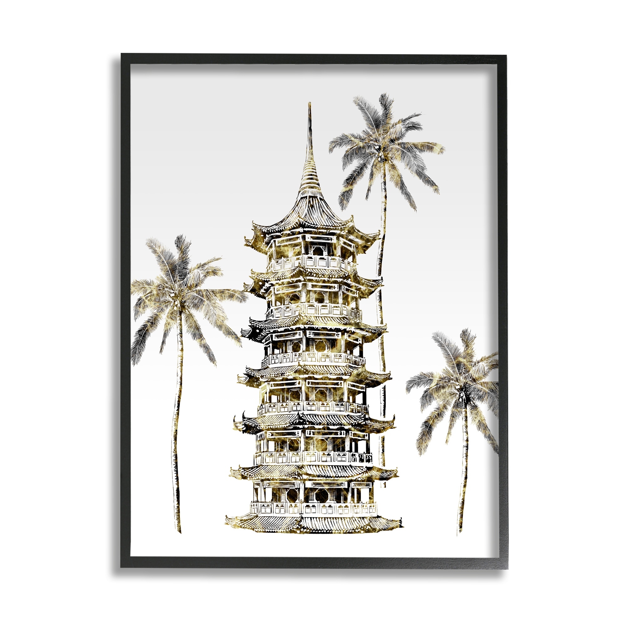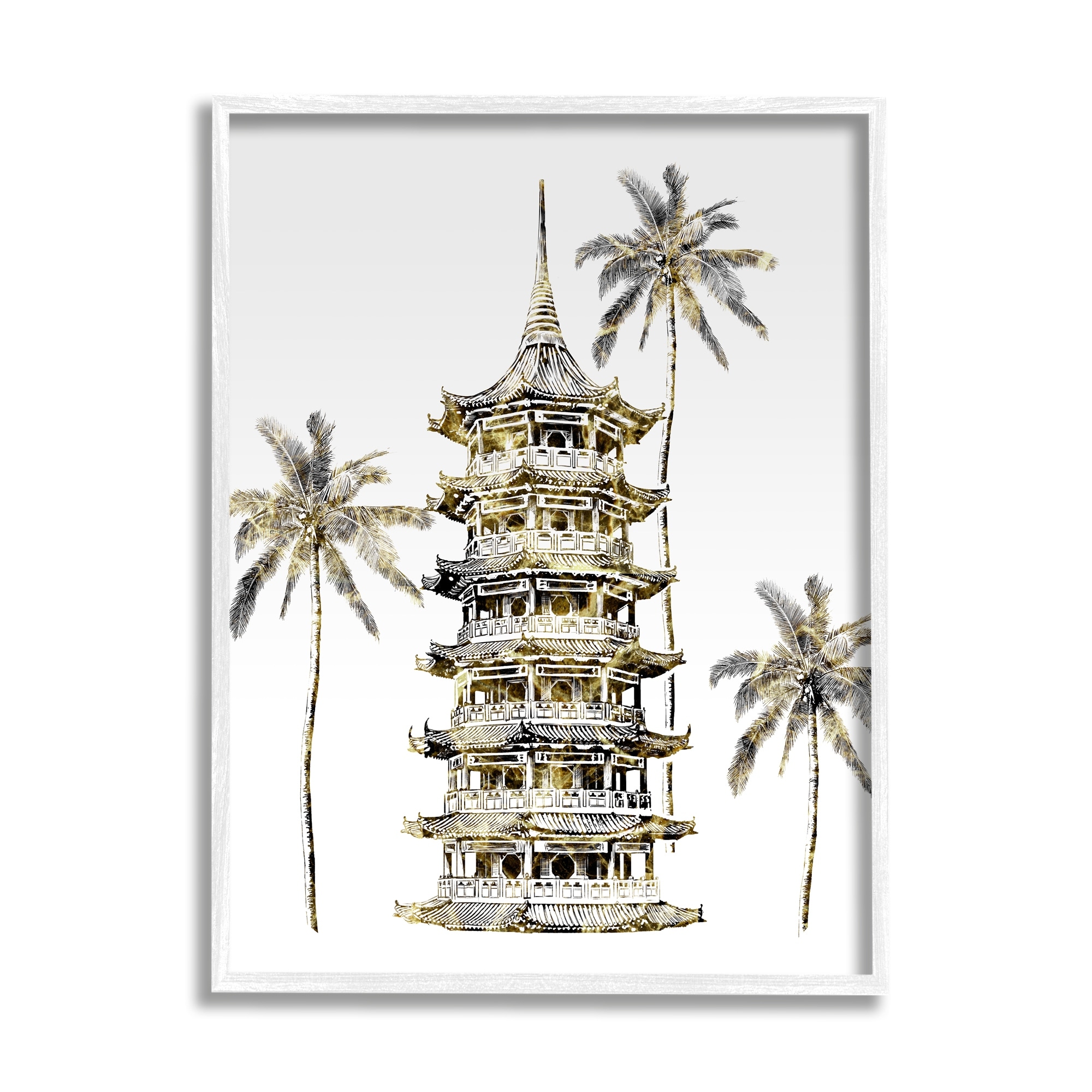 Stupell Sun Pagoda Building Tropical Palms Glam Architecture Framed Wall Art - Green