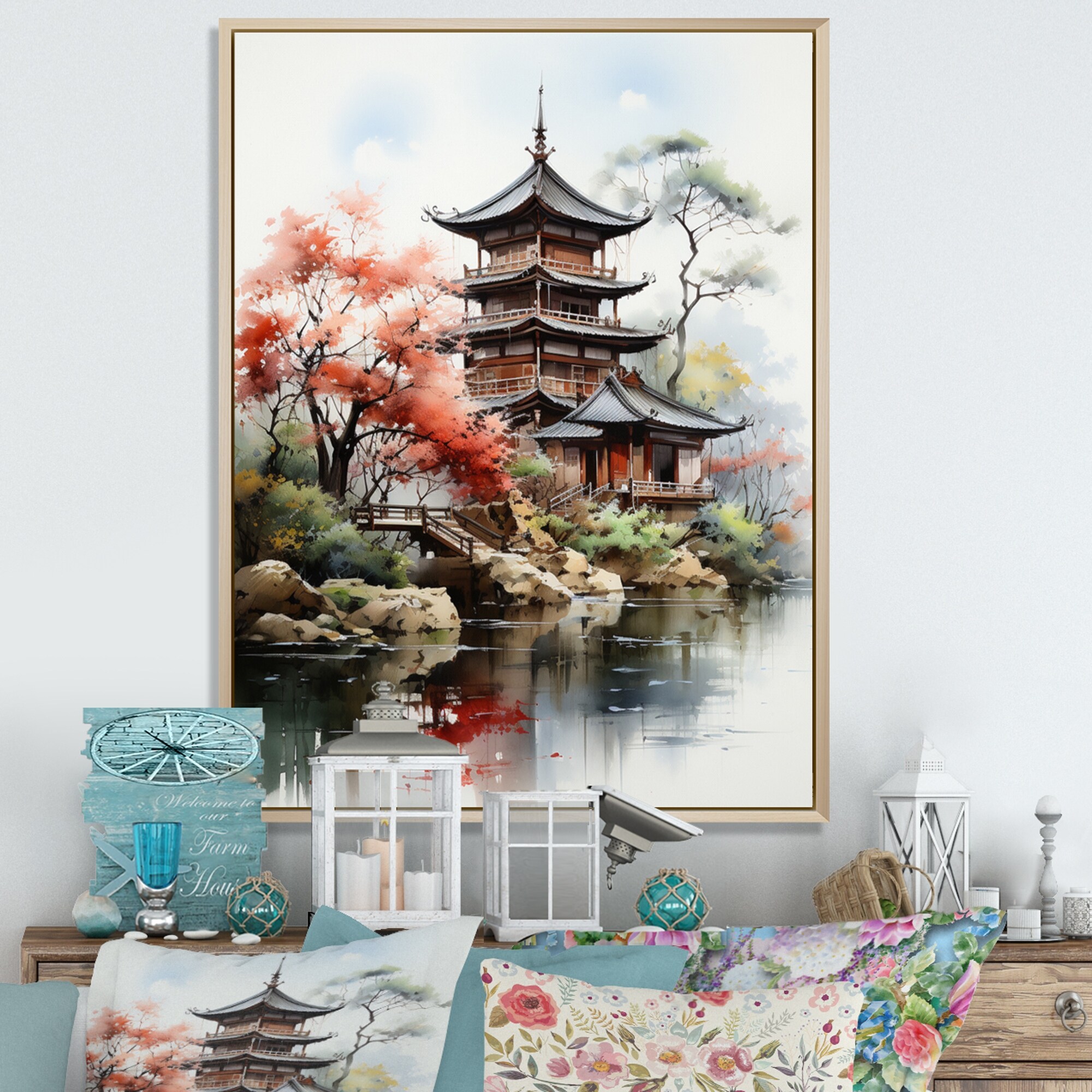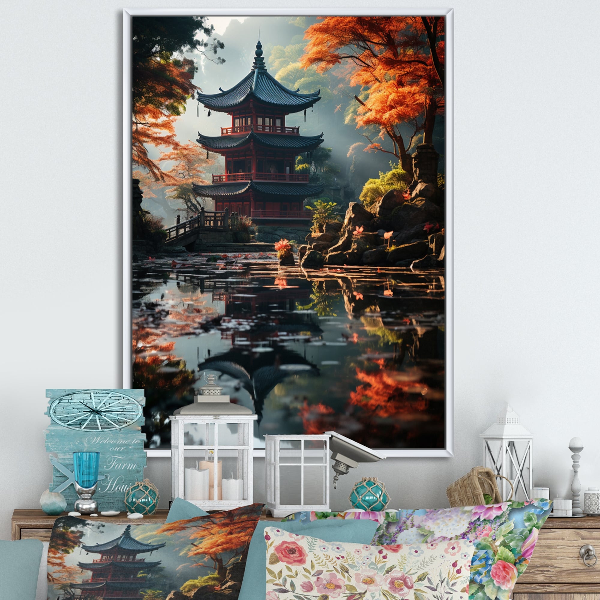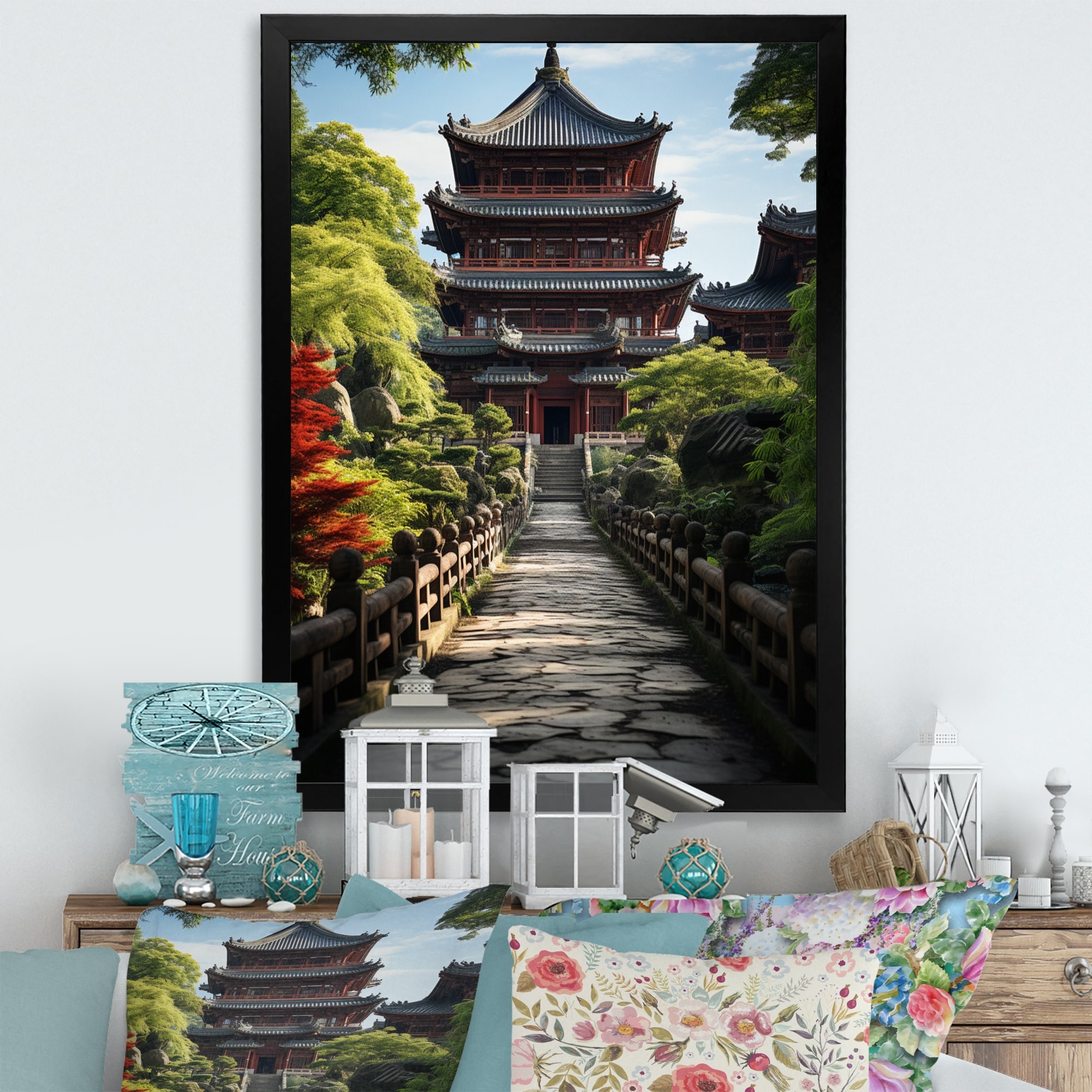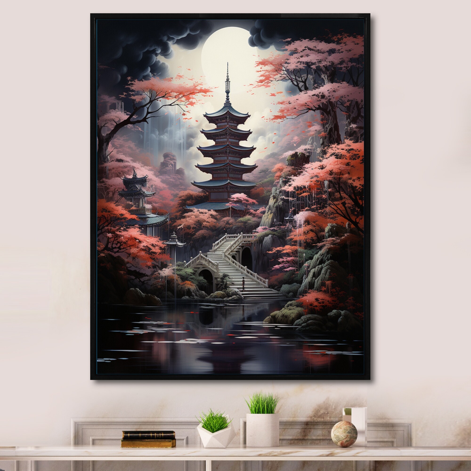 Designart "Japon Art Mystical Pagoda" Japan Art Framed Canvas Wall Art