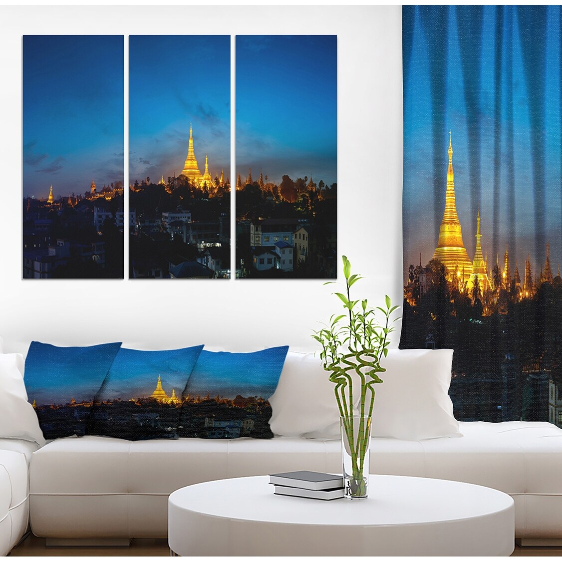 Designart "Shwedagon pagoda at dusk" Cityscapes Photography on Wrapped Canvas set