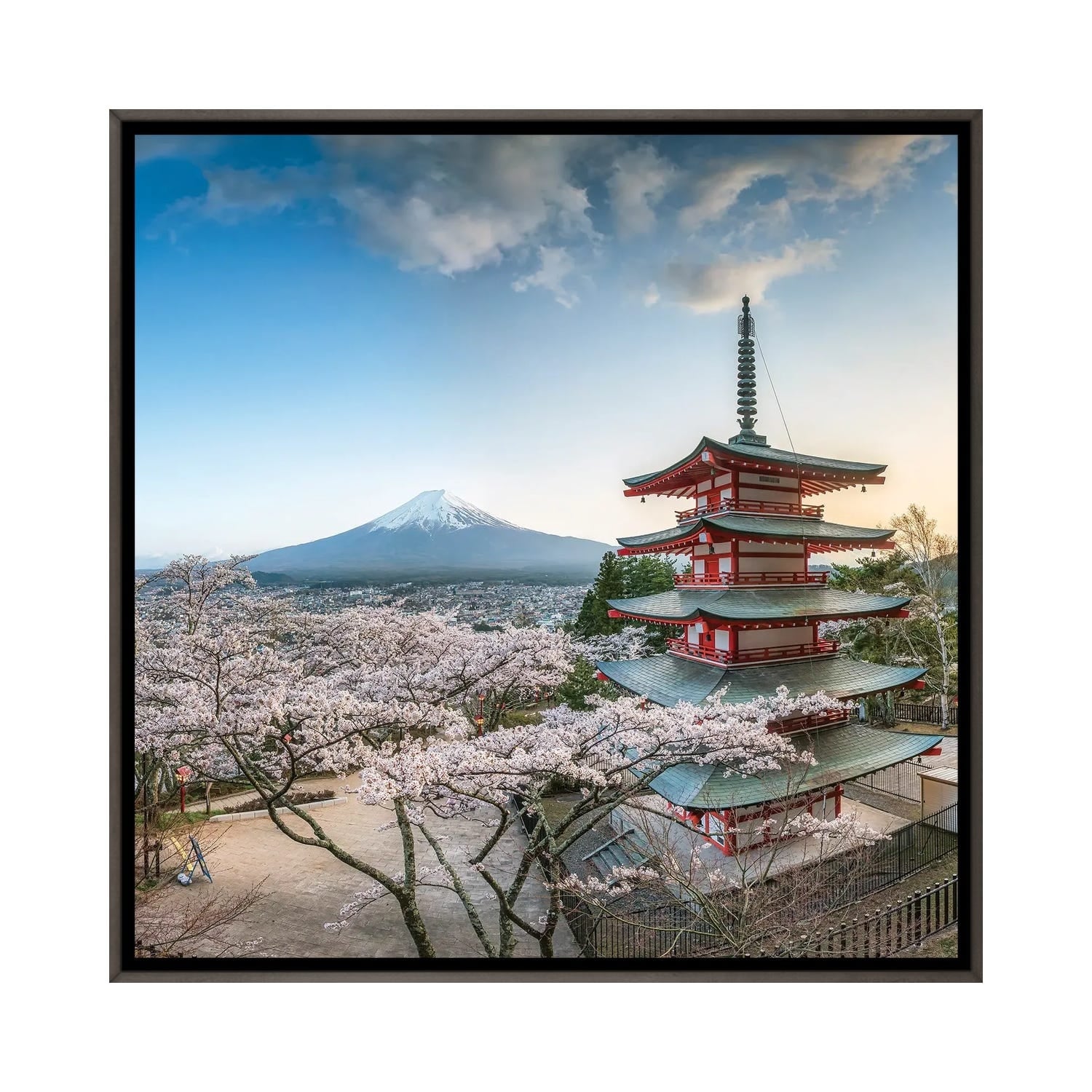 iCanvas "Chureito Pagoda And Mount Fuji During Cherry Blossom Season, Fujiyoshida, Japan" by Jan Becke Framed