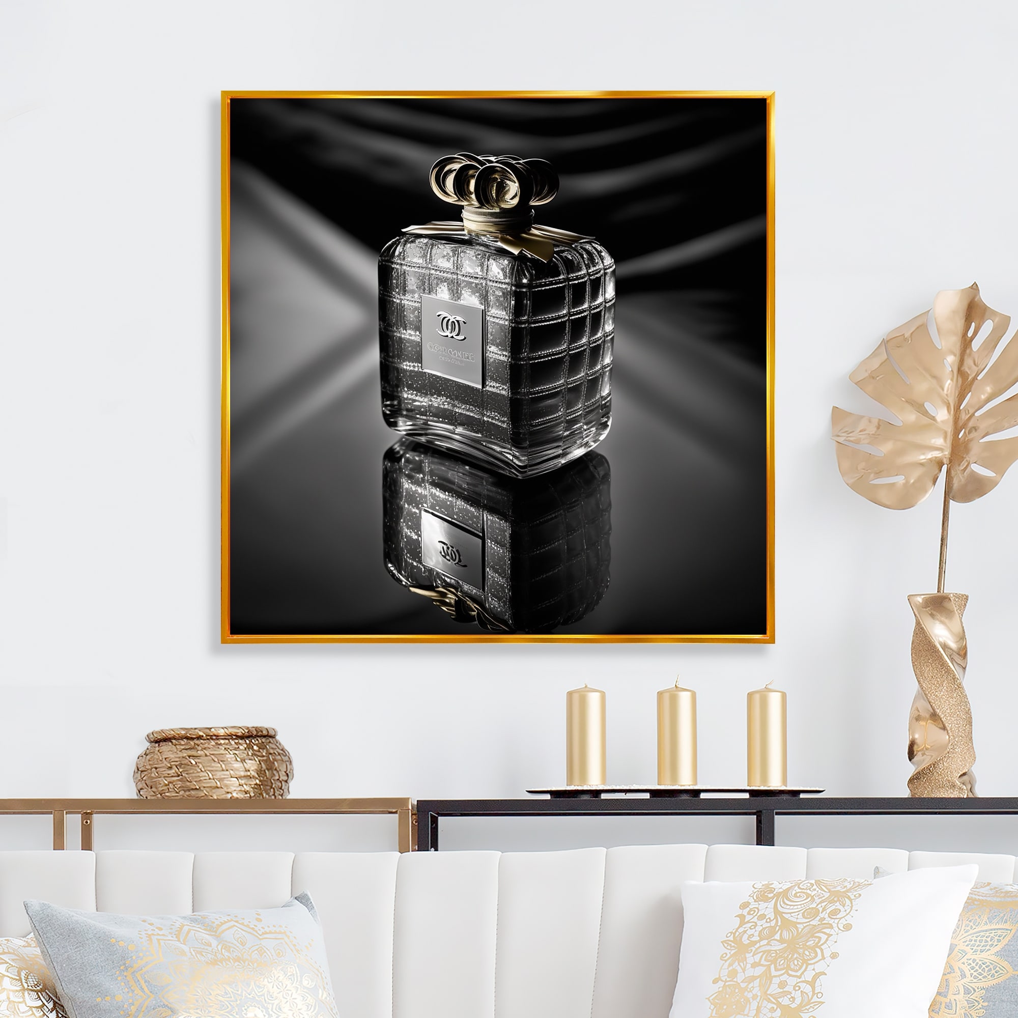 Designart "Vintage Silver Parfume Bottle I" Fashion Framed Canvas Wall Art Print