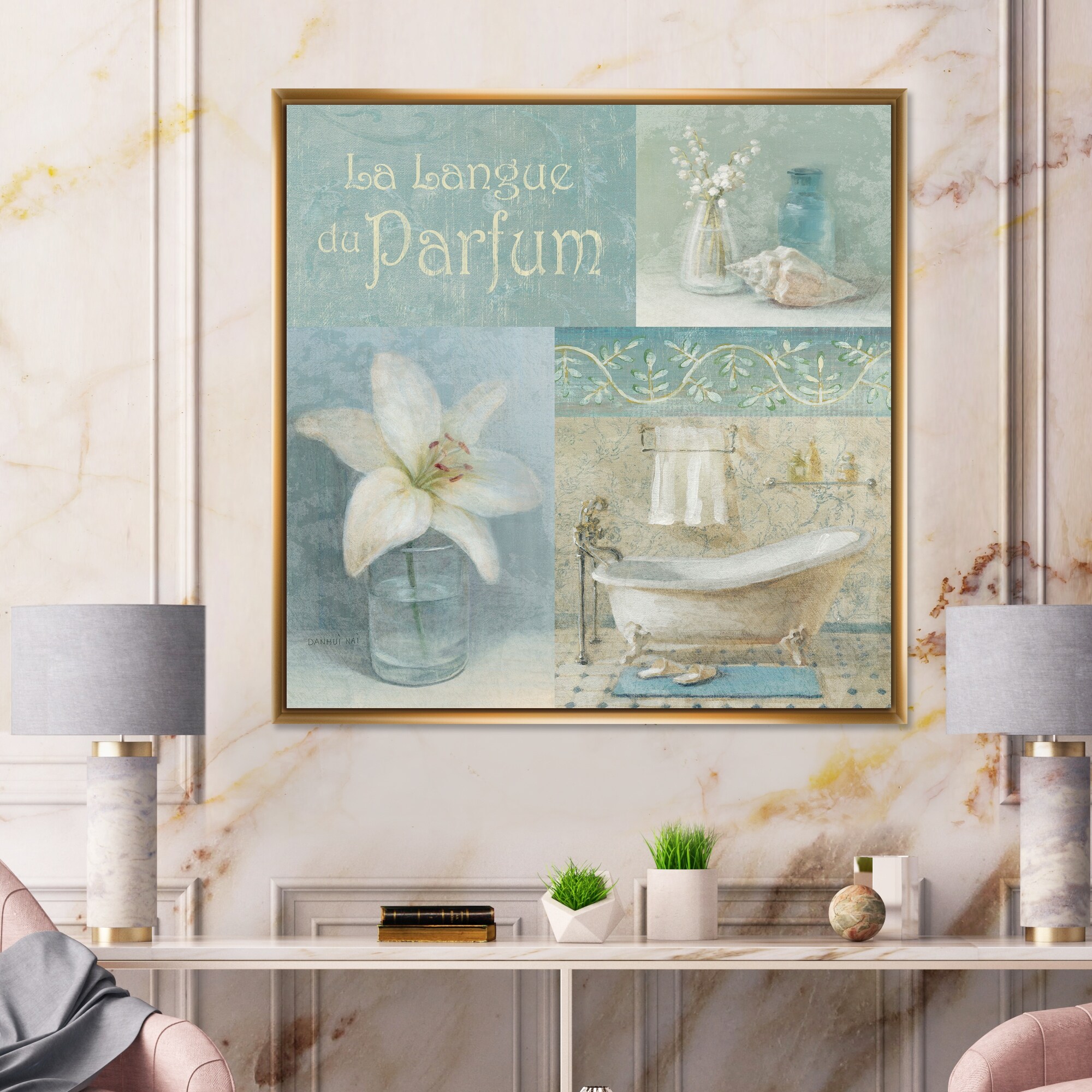 Designart "Bathroom Lily Parfum Bath Story" Bathroom Framed Canvas Art