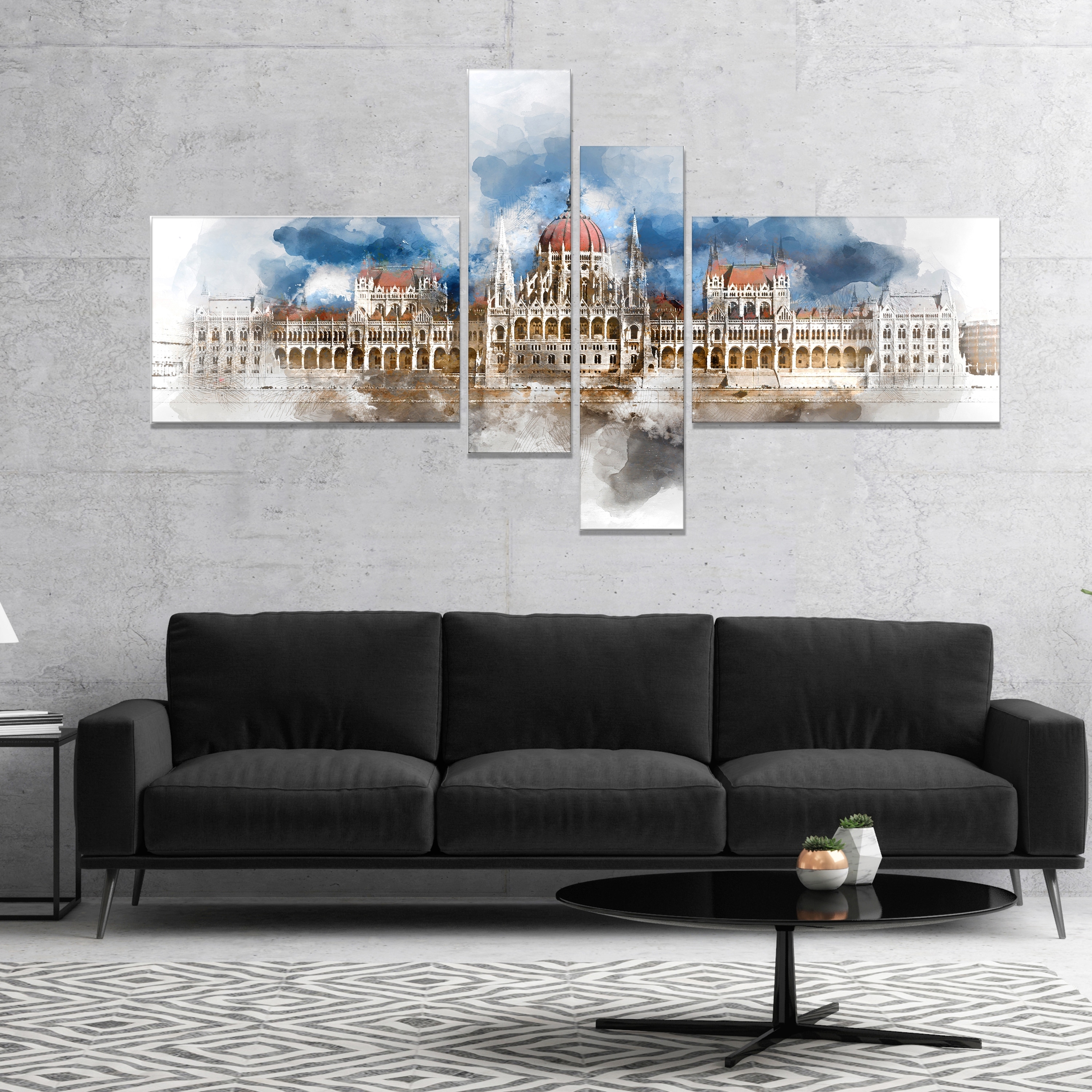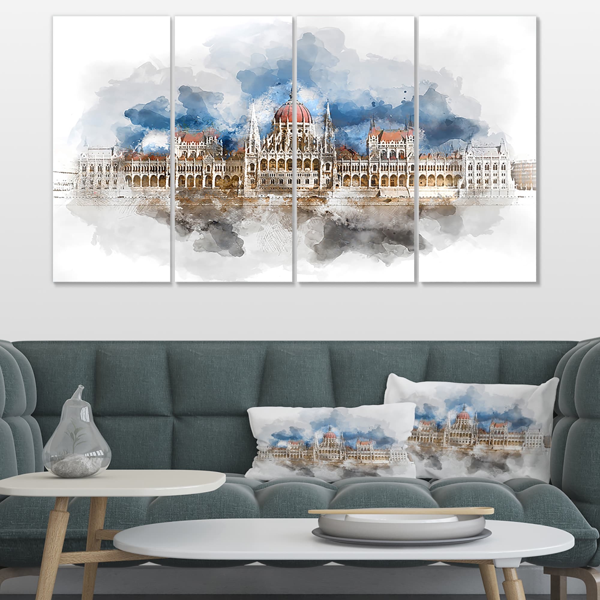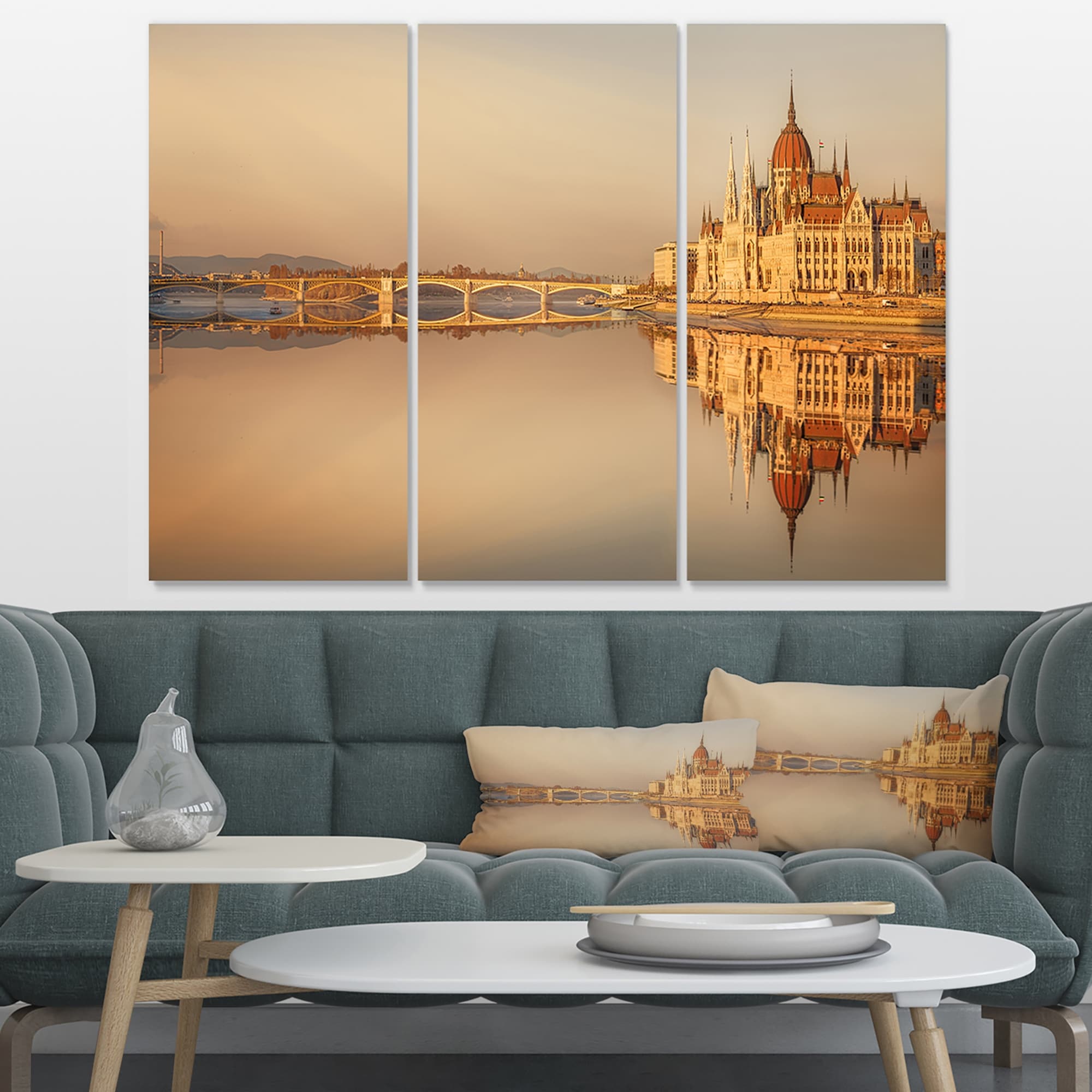 Designart "Hungarian Parliament Panorama" Modern Cityscape Wall Art