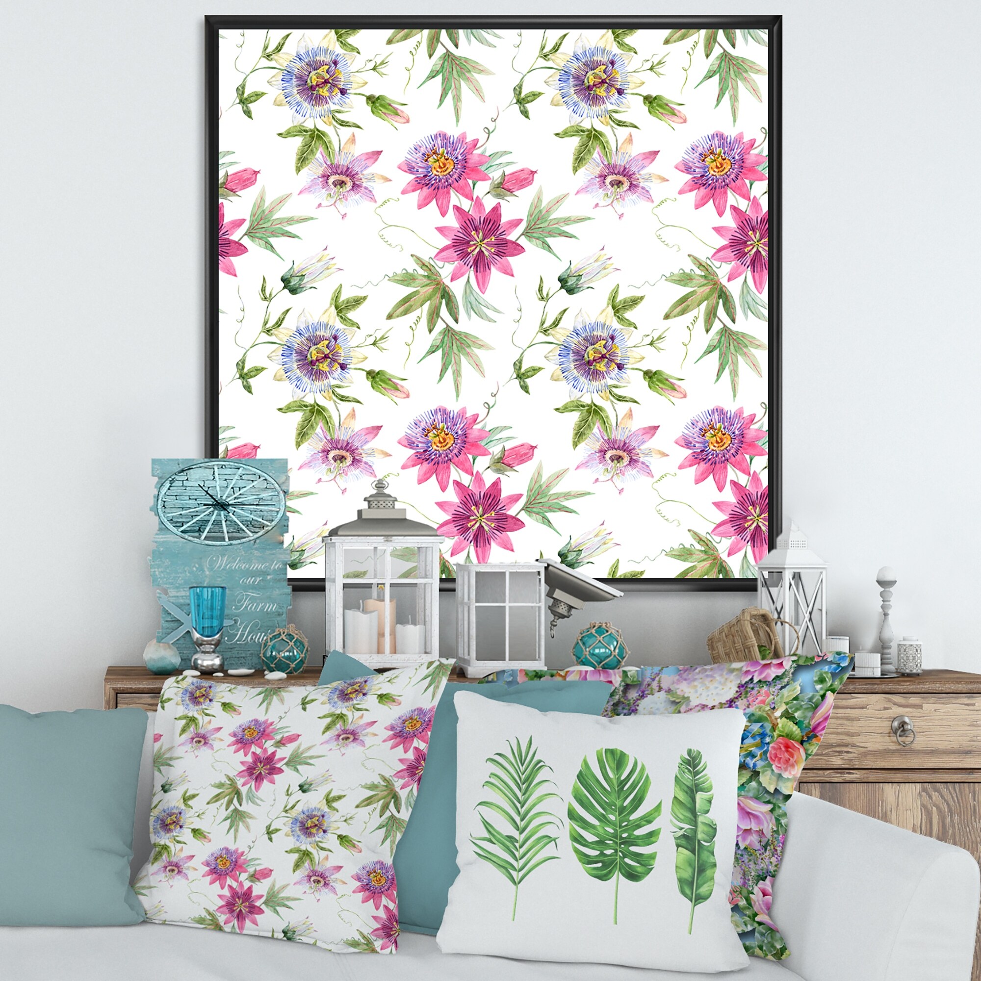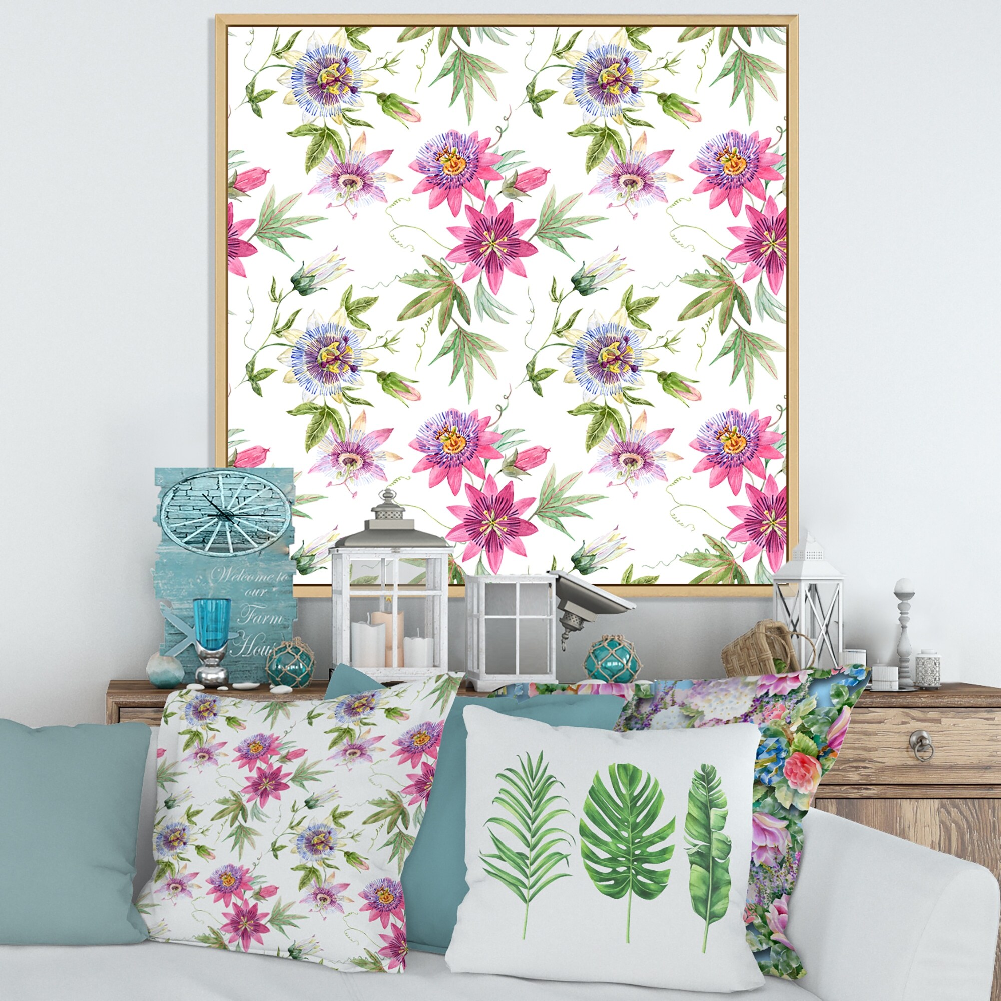 Designart "Pink Passionflower Flowers" Traditional Framed Canvas Wall Art Print