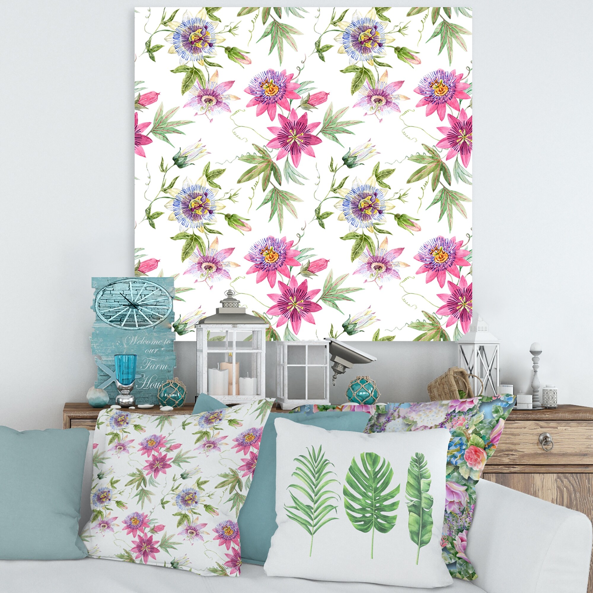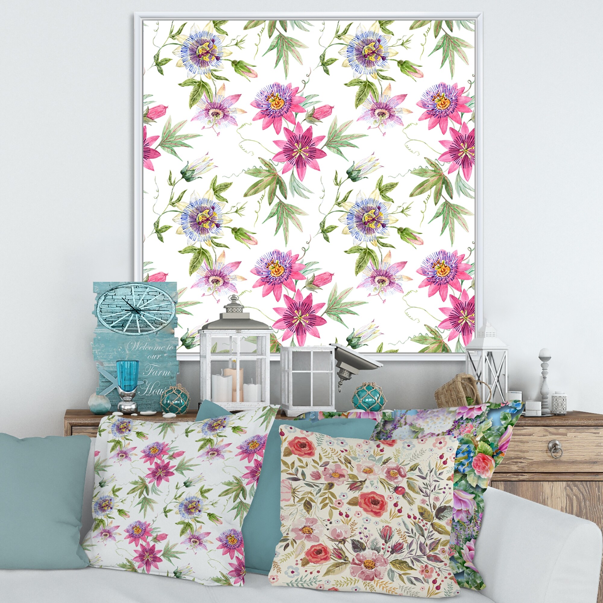 Designart "Pink Passionflower Flowers" Traditional Canvas Wall Art Print
