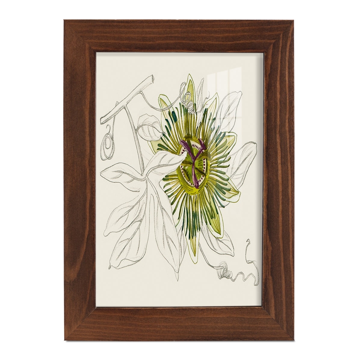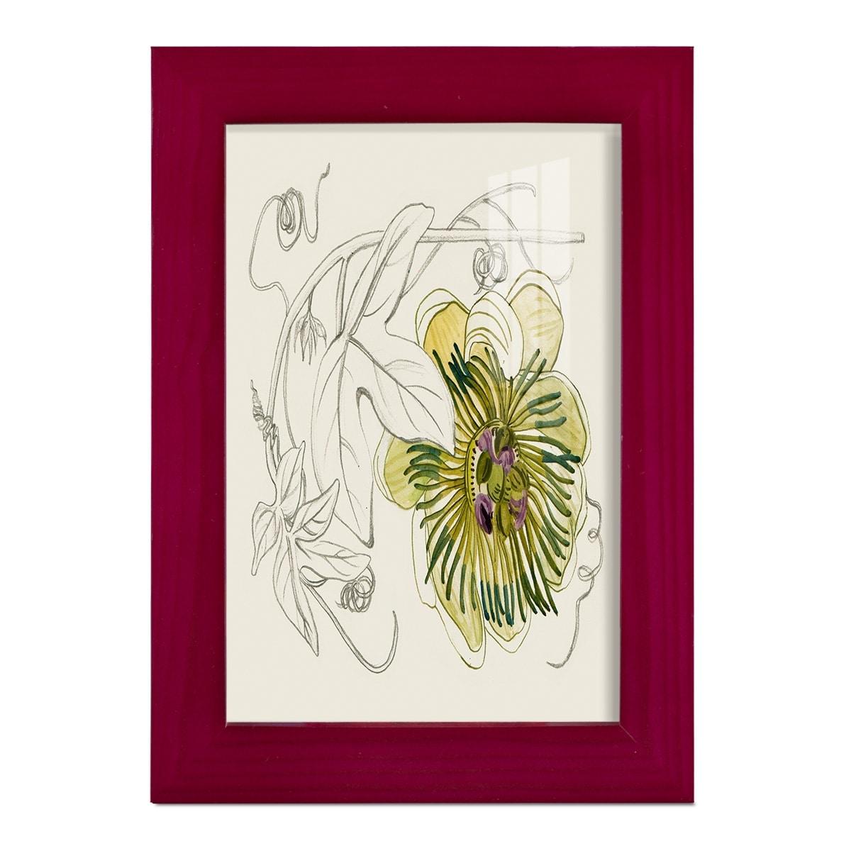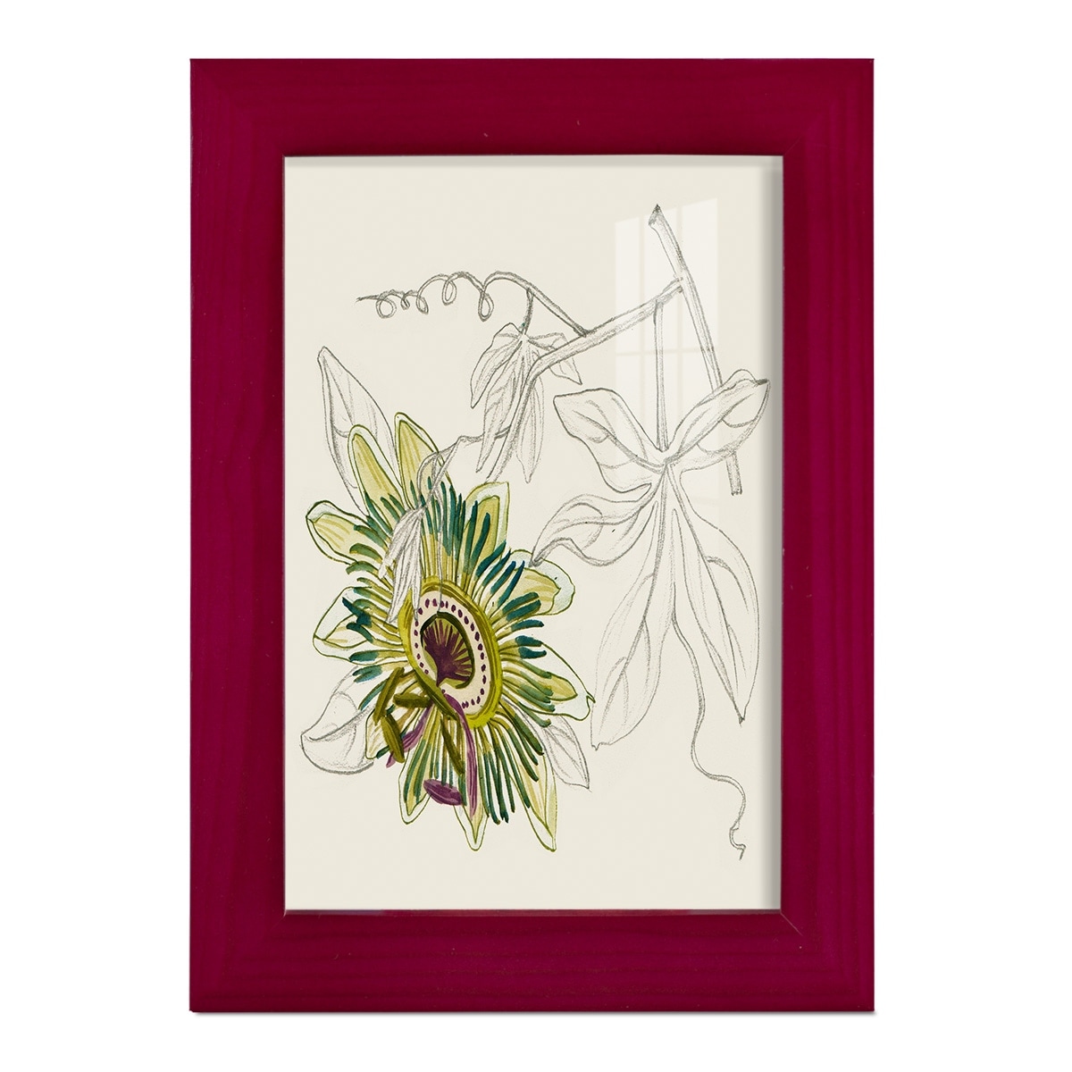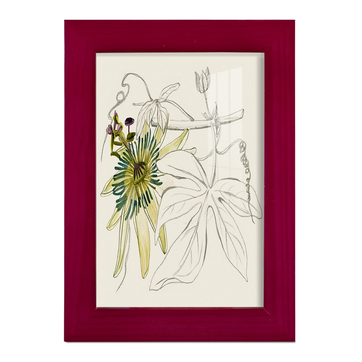 Passionflower II -Framed Print w/glass-Cherry Red