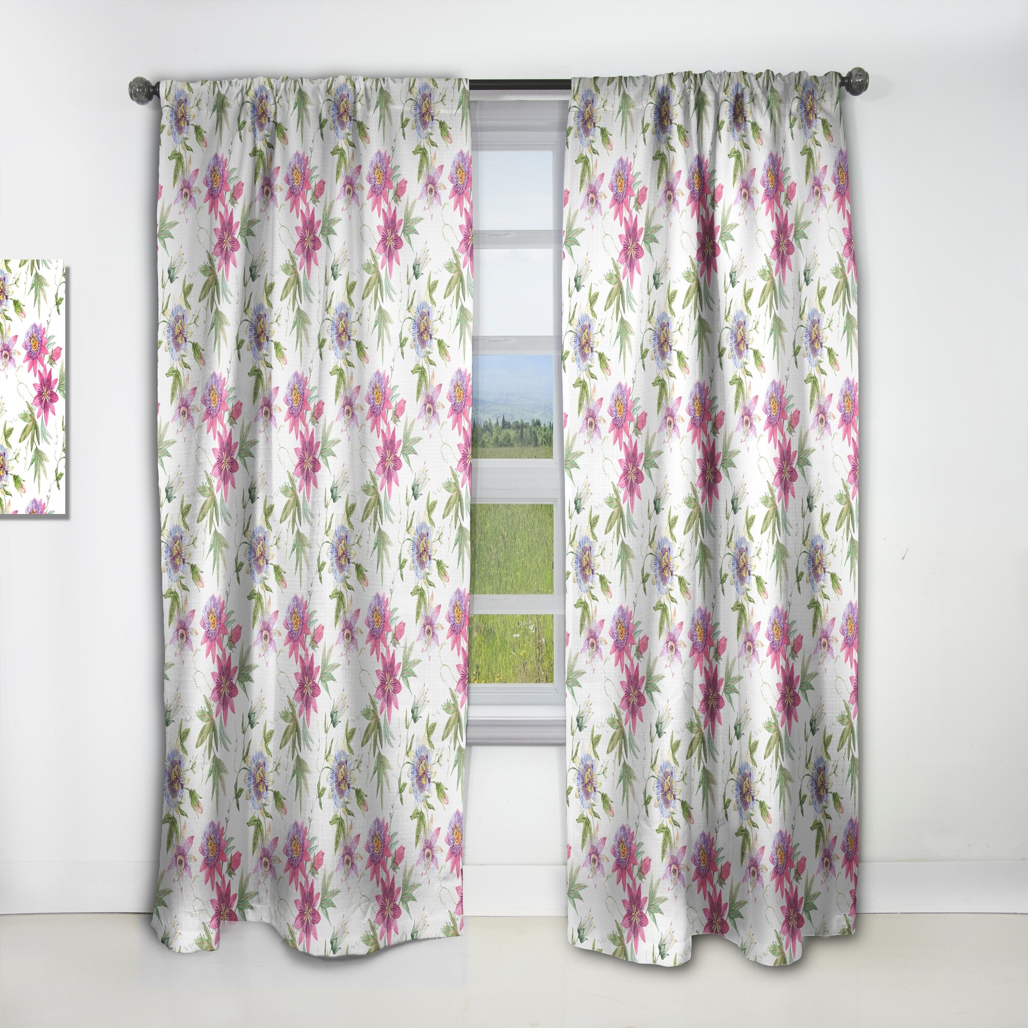Designart 'Pink Passionflower Flowers' Traditional Curtain Single Panel