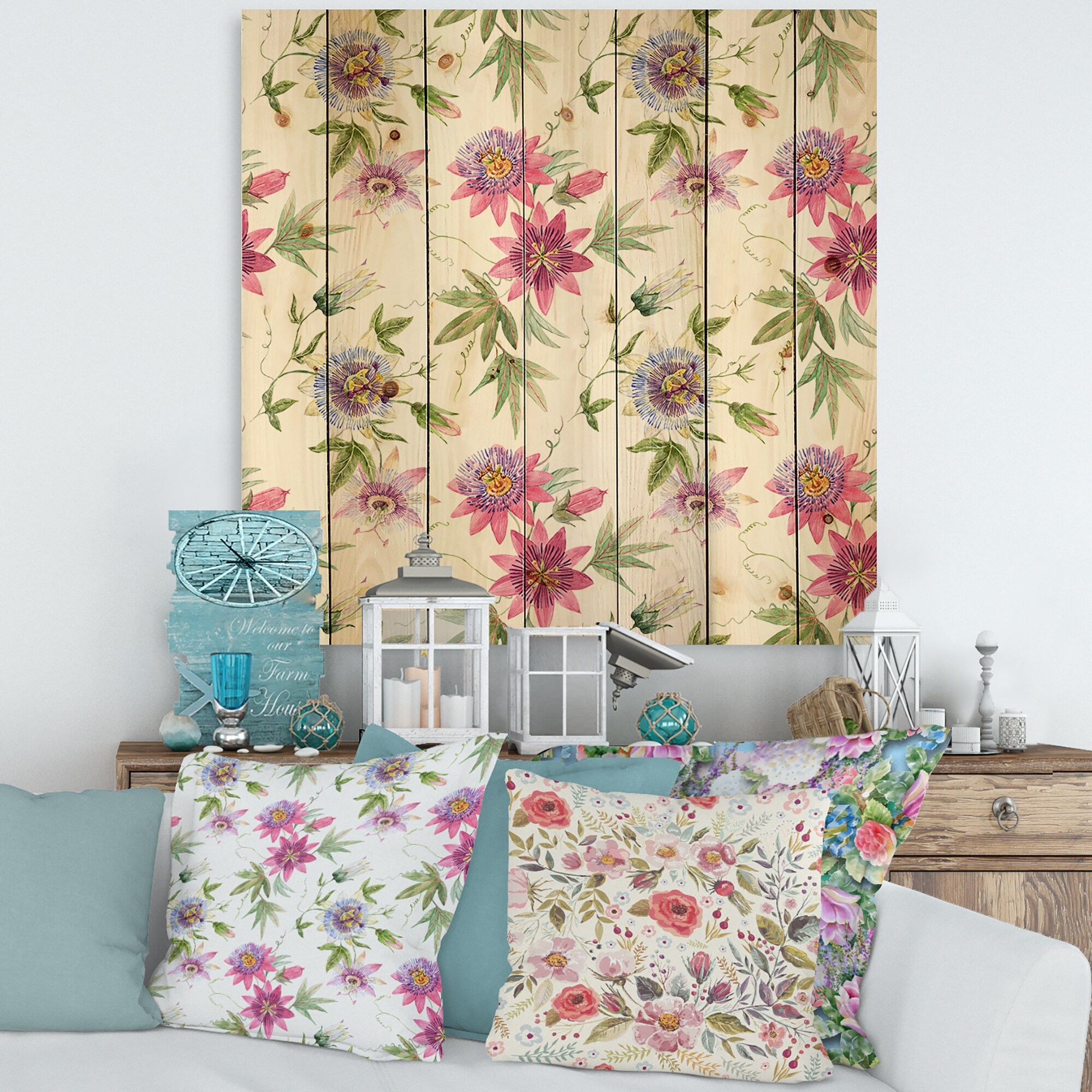 Designart 'Pink Passionflower Flowers' Traditional Print on Natural Pine Wood