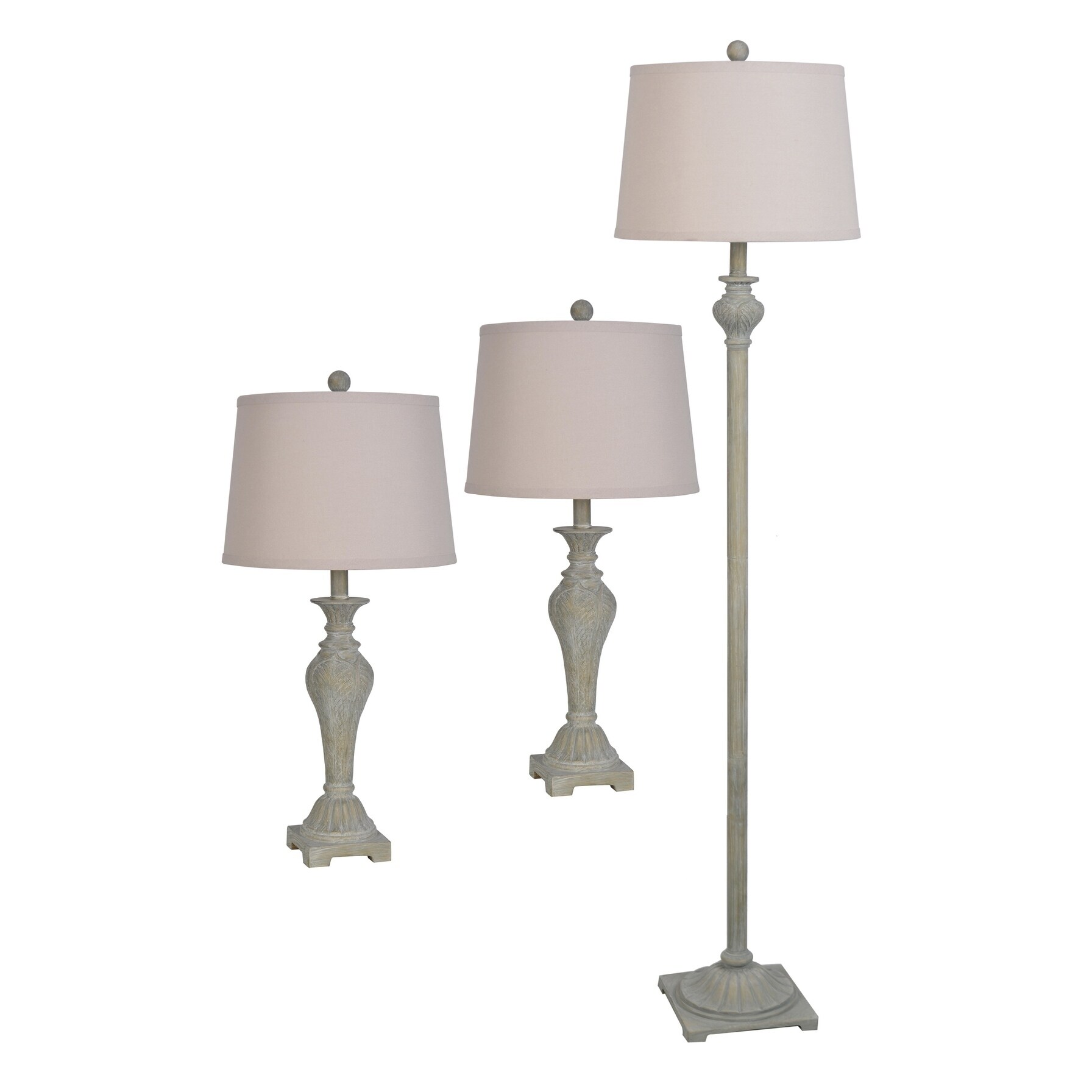 Lamps Per Se 3-pc. Rustic Goldtone/Grey Lamps (1 Floor; 2 Table) - N/A