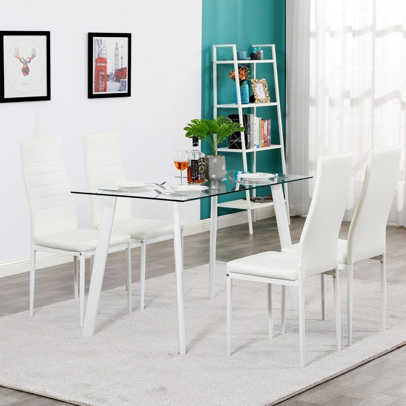 Costyway 5 PC Dining Set Wood Metal Table 30'' and 4 Chairs Kitchen