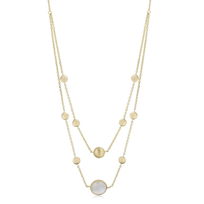14k Yellow Gold Bead Mother of Pearl Accent Station Necklace (adjustable to 16 or 17 inches)