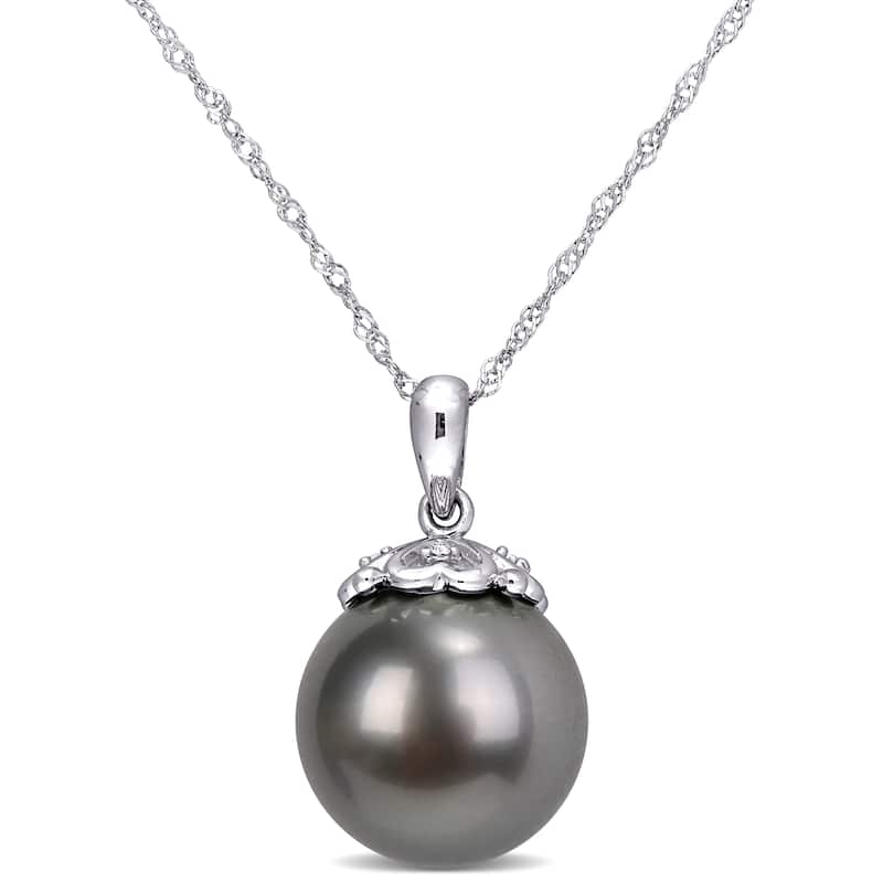 Miadora 10k White Gold Tahitian Platinum Pearl and Diamond Accent Drop Necklace (9.5-10 mm)