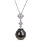 Miadora 10k White Gold Tahitian Cultured Pearl Pink Sapphire and 1/10ct TDW Diamond Necklace (11-12 MM)