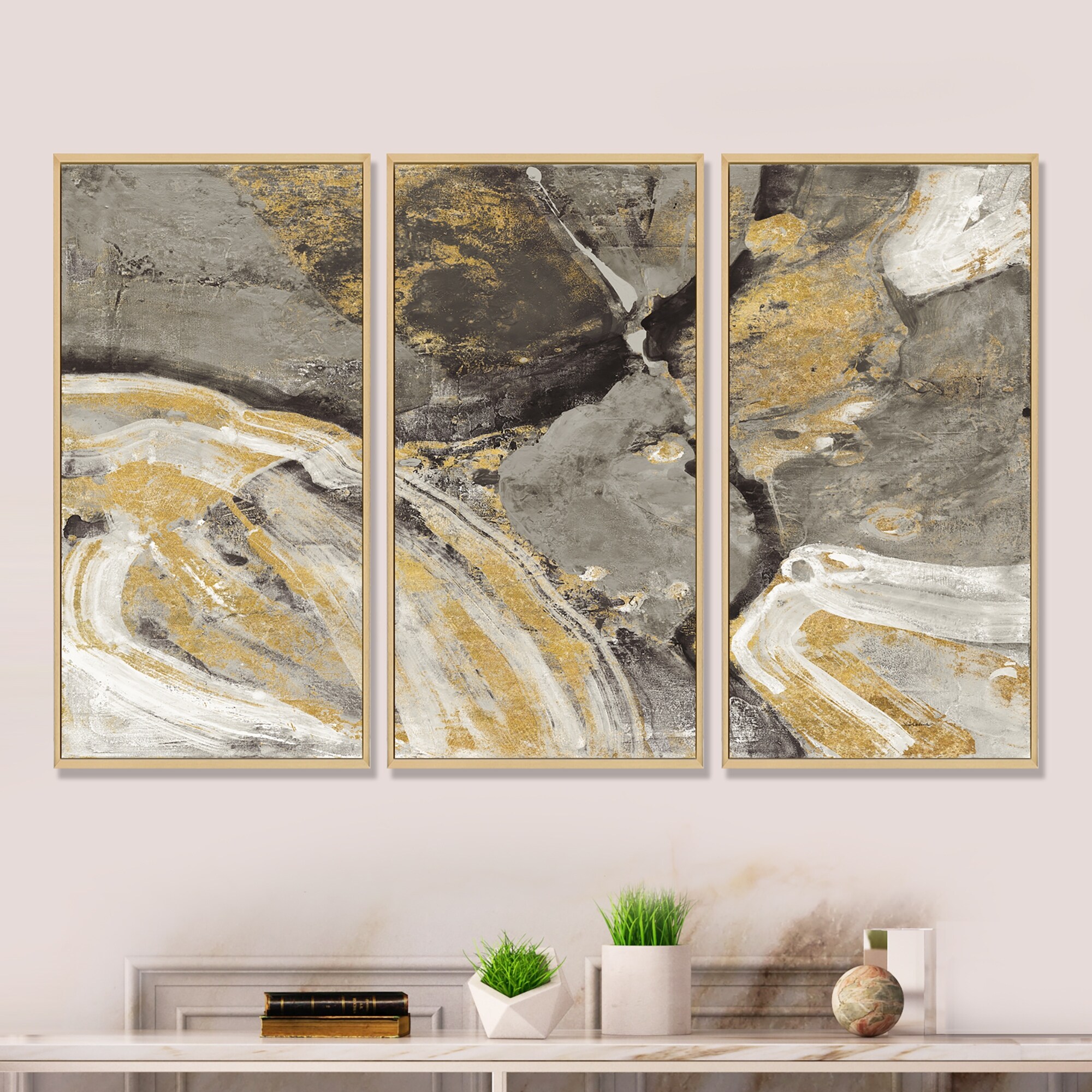 Designart "Glam Phoenix Neutral" Modern & Contemporary Framed Canvas Wall Art Print Set of 3 - 4 Colors of Frames