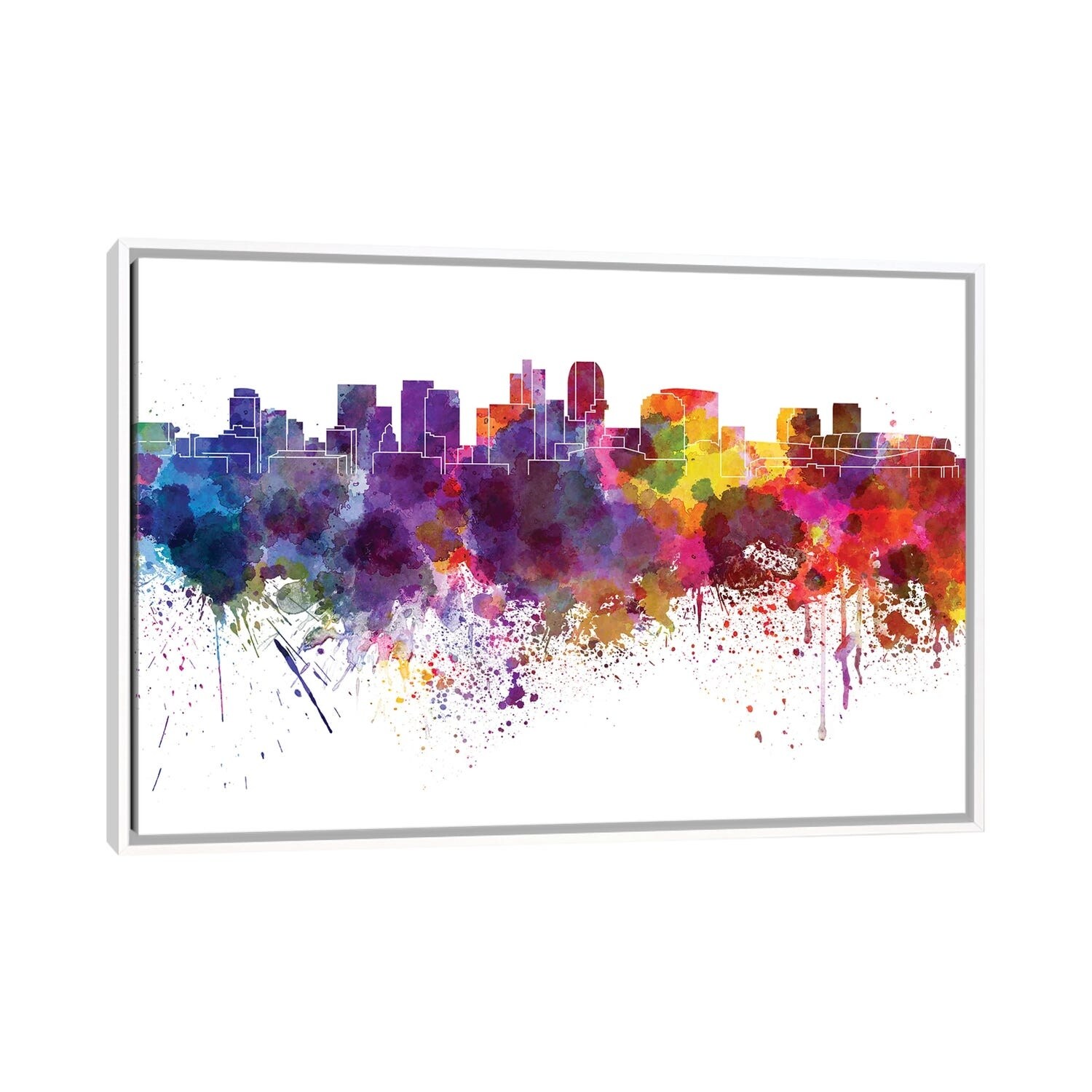 iCanvas "Phoenix Skyline in Watercolor V-II" by Paul Rommer Framed Canvas Print