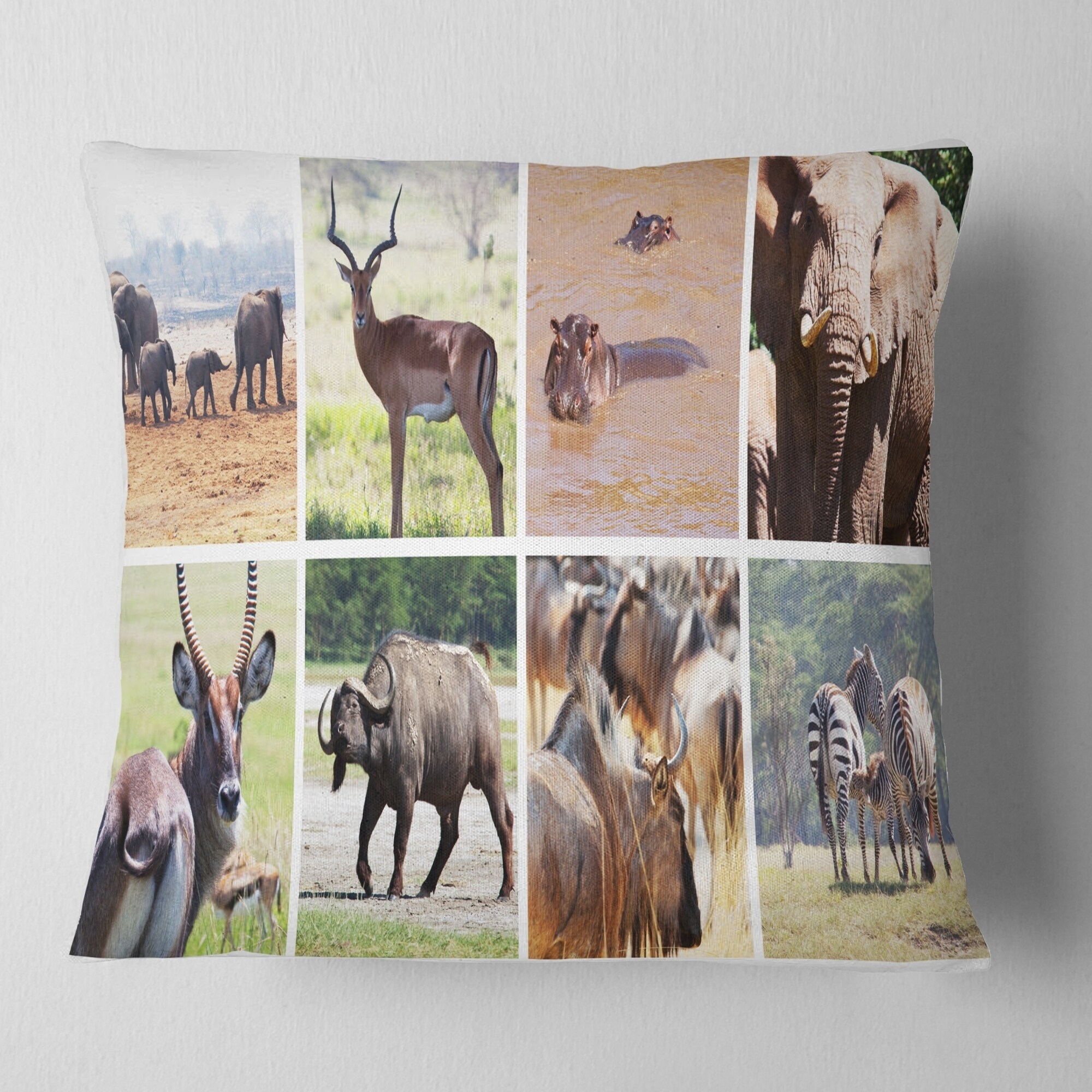 Designart 'Rich African Wildlife Collage' Animal Throw Pillow